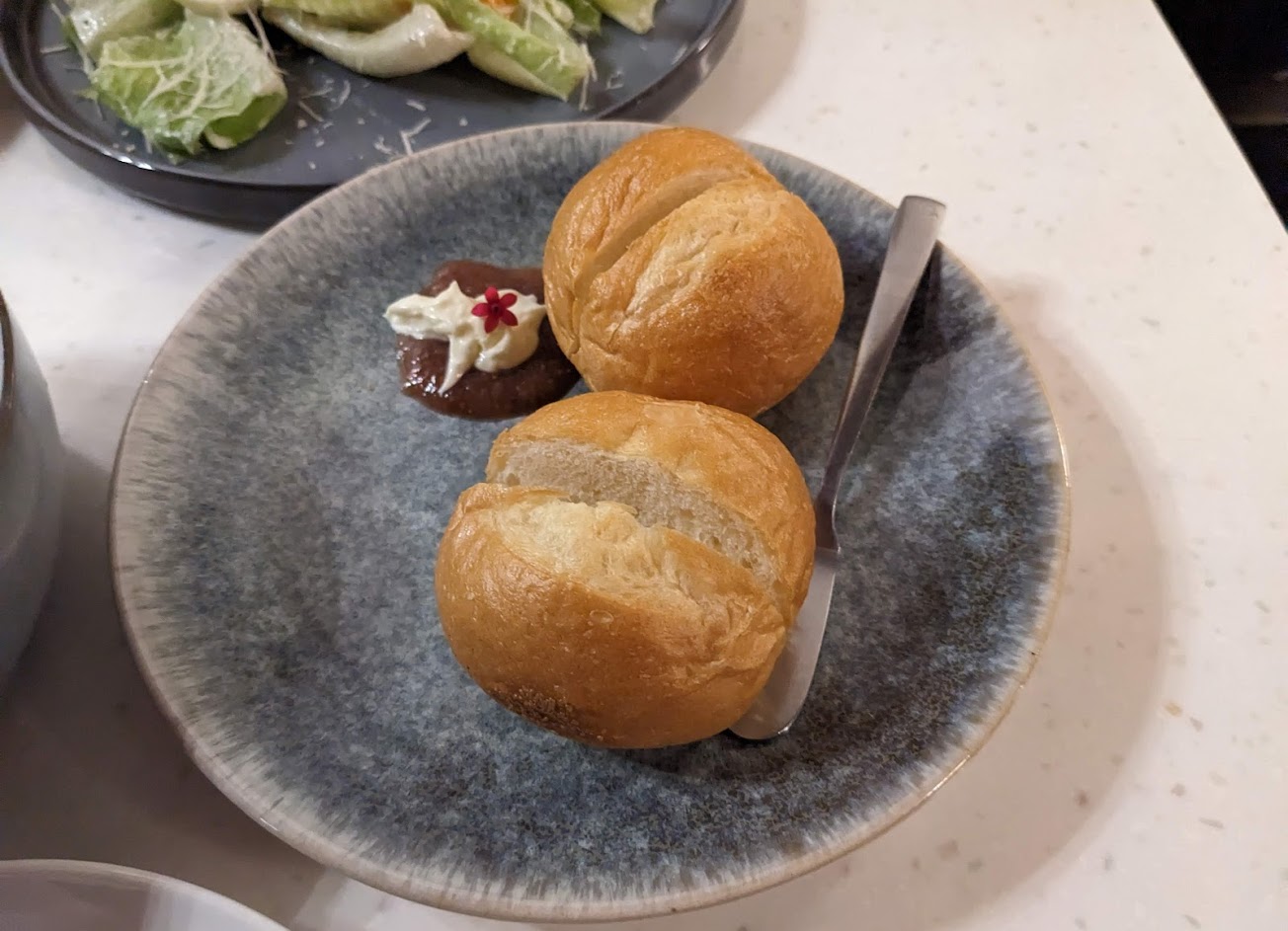 但筍湯有筍的苦味,麵包太硬,感受最不佳的是主餐部分,鴨胸和牛排實在是不太行…都太硬了,很難嚼
