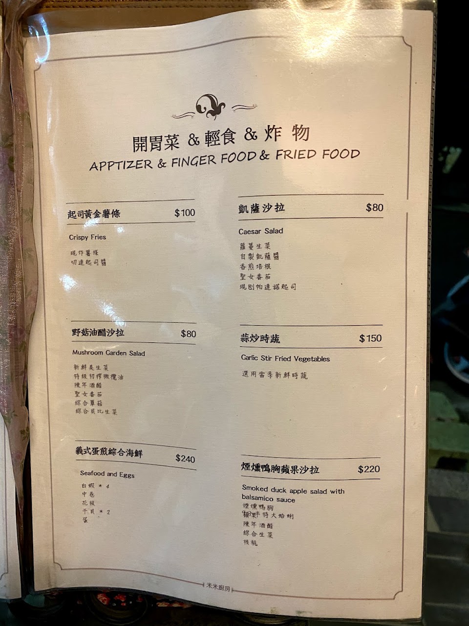環境、氣氛很棒,但由一對老夫婦共同經營的小店,柔和燈光配上歐風裝潢,有點復古風,在此用餐有如穿越時空回到七○年代,一切都慢了下來,餐點可口,在忙碌都很和善、服務很好,完全沒有等到火大的感覺,重點是店內每一張桌子上都有不同的燈具,真的是最很特別 ?? …