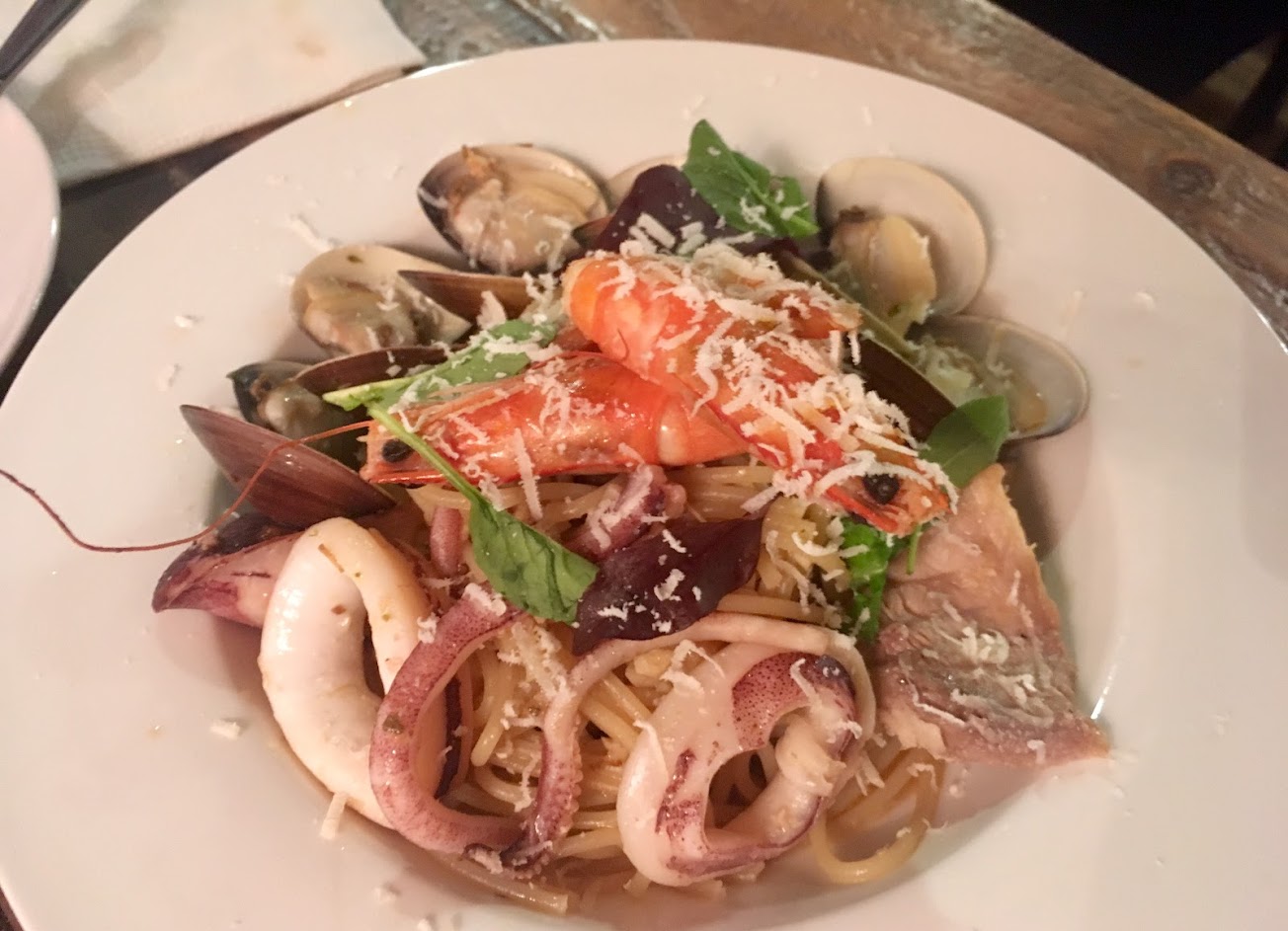 番茄海鮮燉飯很澎湃,義大利麵口感也很好,巷弄小店值得一試。