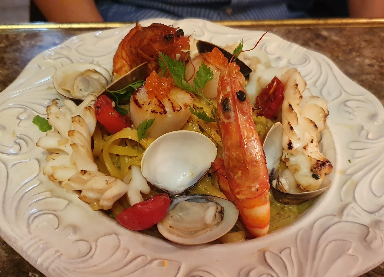 用餐環境舒適,餐點十分美味,我點的是海鮮青醬義大利麵,海鮮超多,真的不誇張!