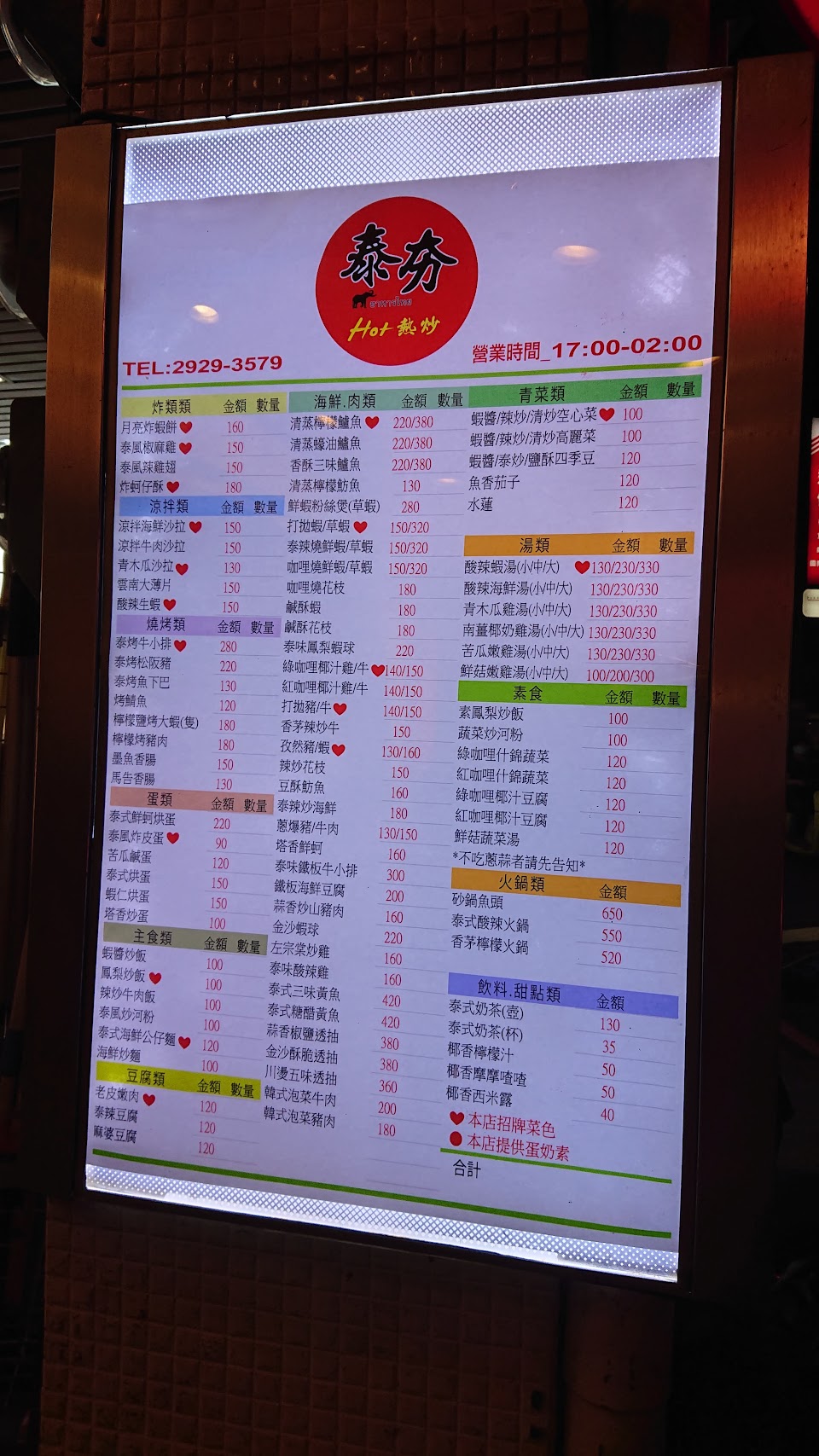 2024最新在地推薦餐廳的菜單_泰夯 (泰式熱炒)的菜單、圖片