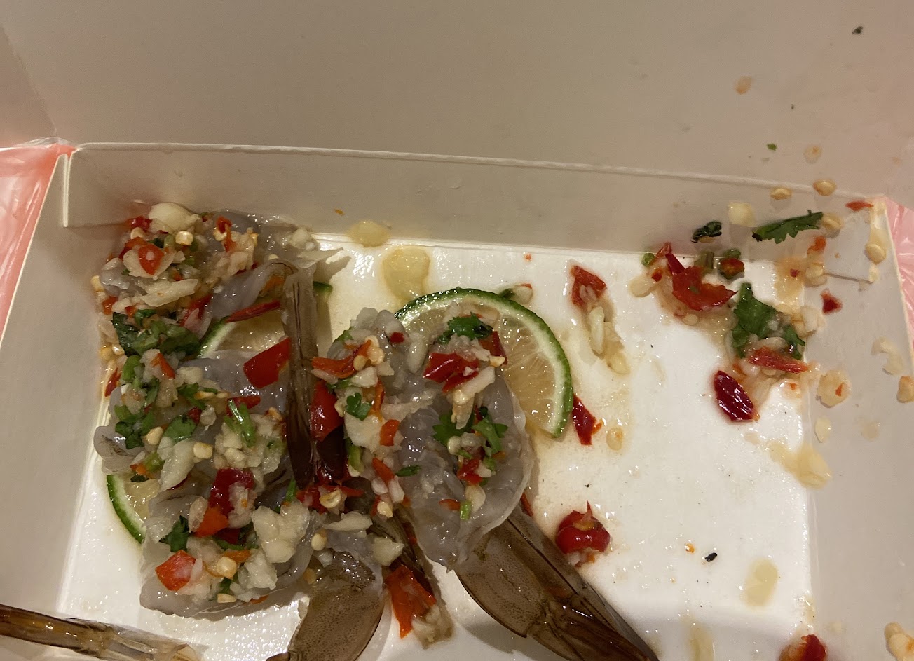 外送點了一份涼拌生蝦,只有五隻蝦…?價錢$160..?