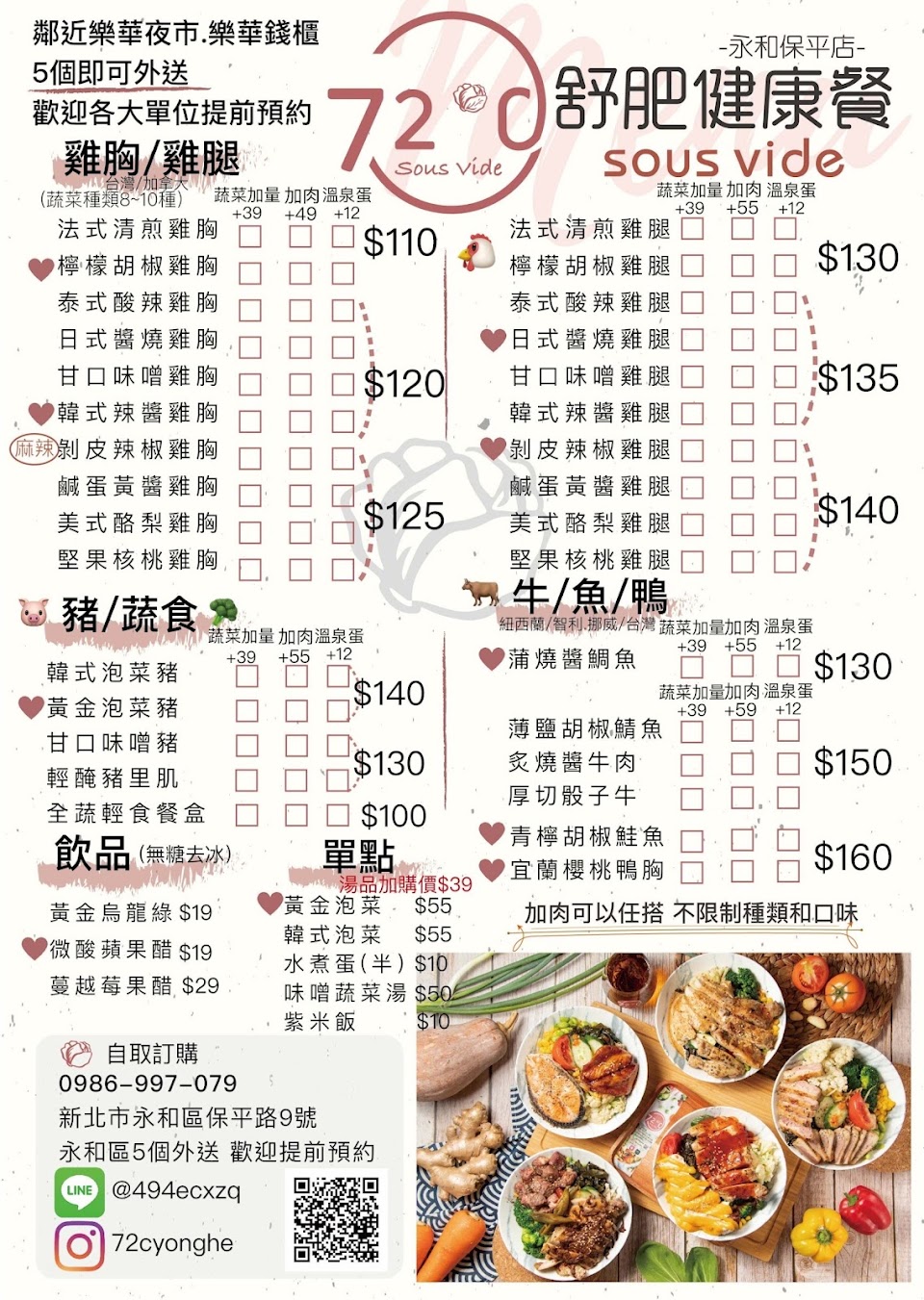 2024最新在地推薦餐廳的菜單_72度C舒肥健康餐 永和保平店的菜單、圖片