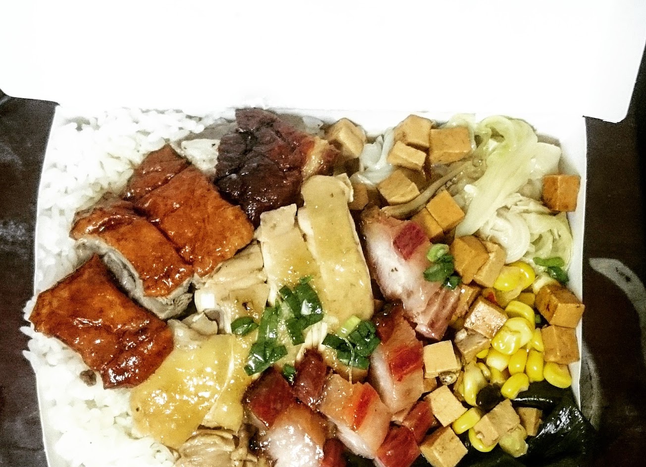 排隊排超久, 不算非常道地的香港燒臘, 跟台式的便當比較類似, 內外帶都要排隊, 可選四樣菜,菜的味道比較重口味, 叉燒的肉烤的不柴, 油雞更是軟嫩好吃, 價錢比一般燒臘貴一點點,(跟部分燒臘店一樣) 但分量也比一般燒臘多一點, CP值算是偏高的。