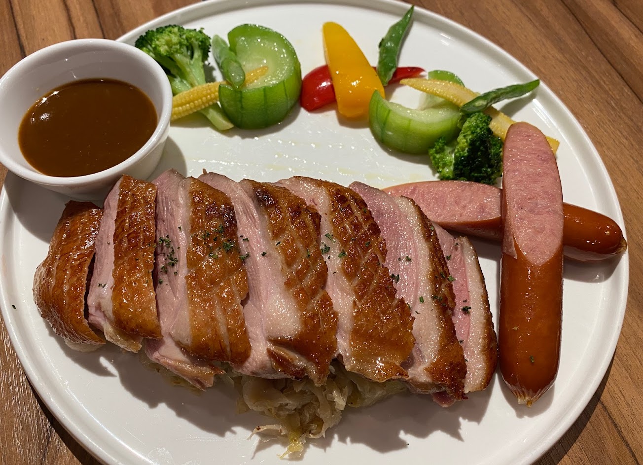 大推豬腳,皮十分脆,肉也很好吃,份量足夠,比德國吃到還棒。白醬頓飯也十分好吃,濃郁。