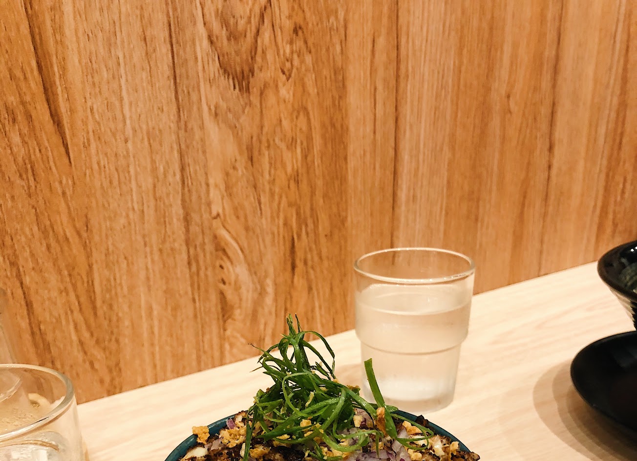 叉燒飯以生洋蔥末與細粒肥叉燒鋪滿其上 最上層則以蔥絲點綴之 叉燒的油脂和美乃滋的甜味交融 整體的味道強烈但盛盤方式有待改善 過小的器皿讓盛舀感到困難,亦無法攪拌 只鋪墊在上方的食材、孤立的中段與底部的米飯 致使大部分的米飯配不到叉燒,吃起來單調 味道不差,但食用體驗實在可惜