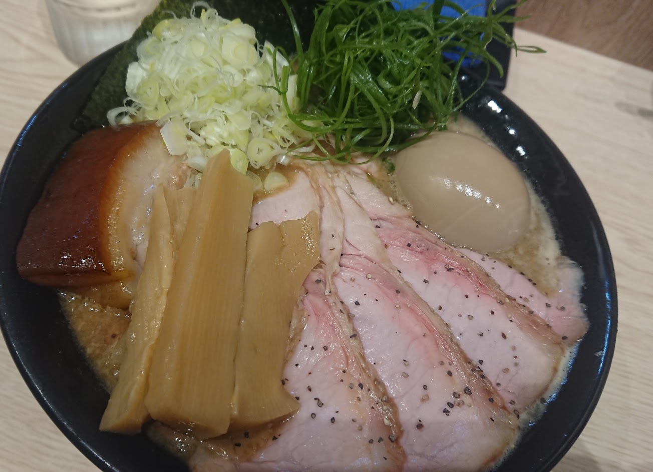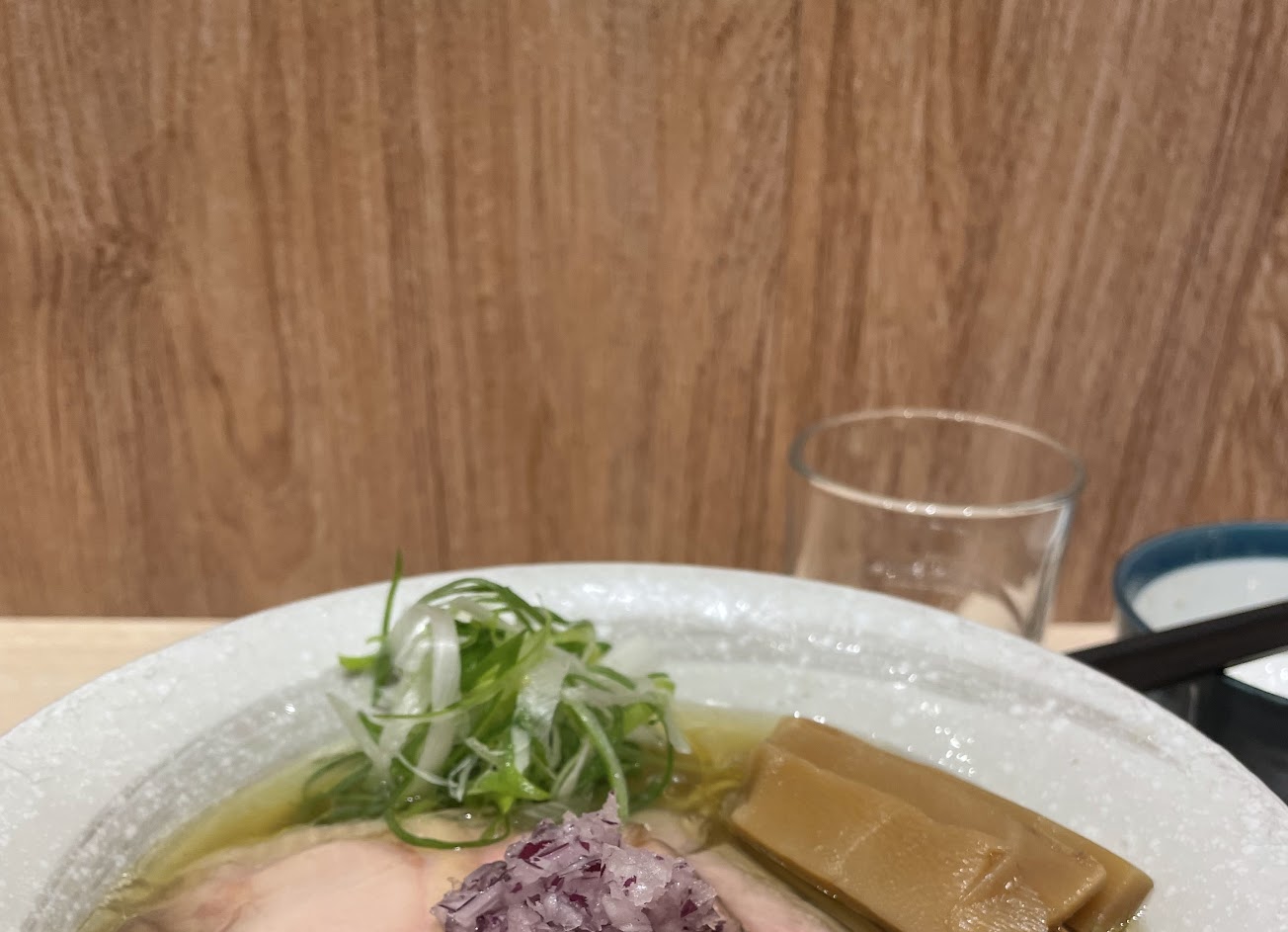 登記之後大約要等1.5小時 湯頭對我來說偏鹹,一碗麵配了三杯水, 叉燒跟加點的糖心蛋好吃, 但個人不太喜歡碎洋蔥, 把湯頭的味道搶走了, 但整體來說還是不錯。