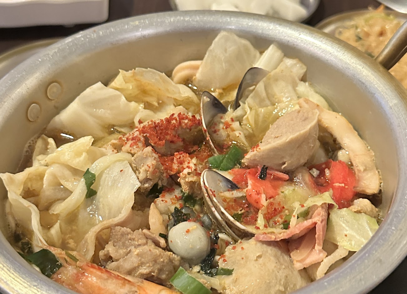 部隊鍋湯頭好喝,附的小菜很多,也好好吃