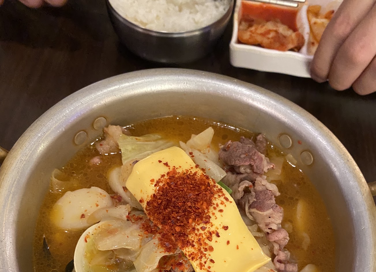 點了部隊鍋及辣炒年糕,料好實在,味道很道地,如果不吃辣可能會覺得蠻辣的?不過有附一壺茶,可以解辣唷。