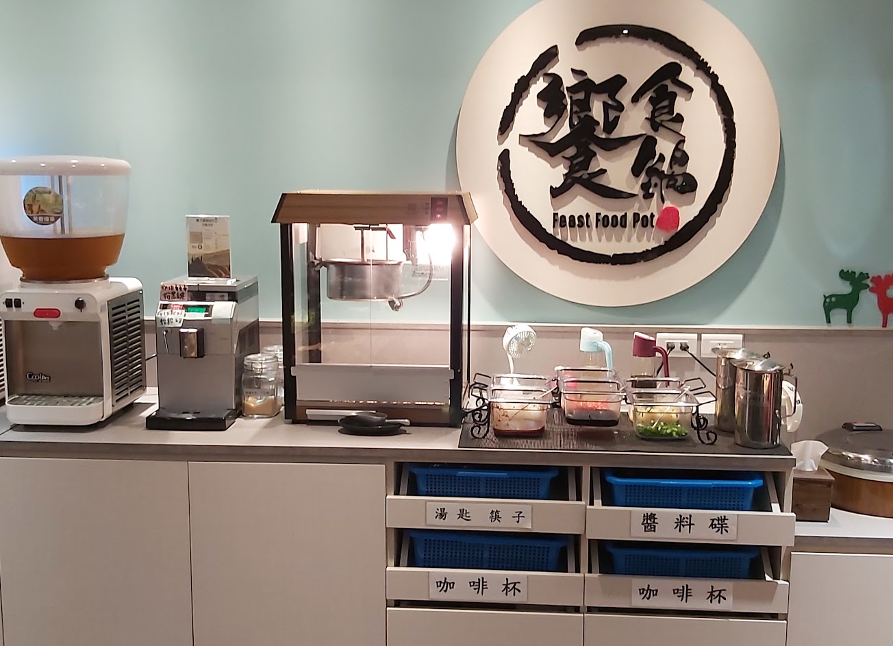 有附餐無限使用:醬料、清湯、飲料、冰沙、焦糖爆米花。