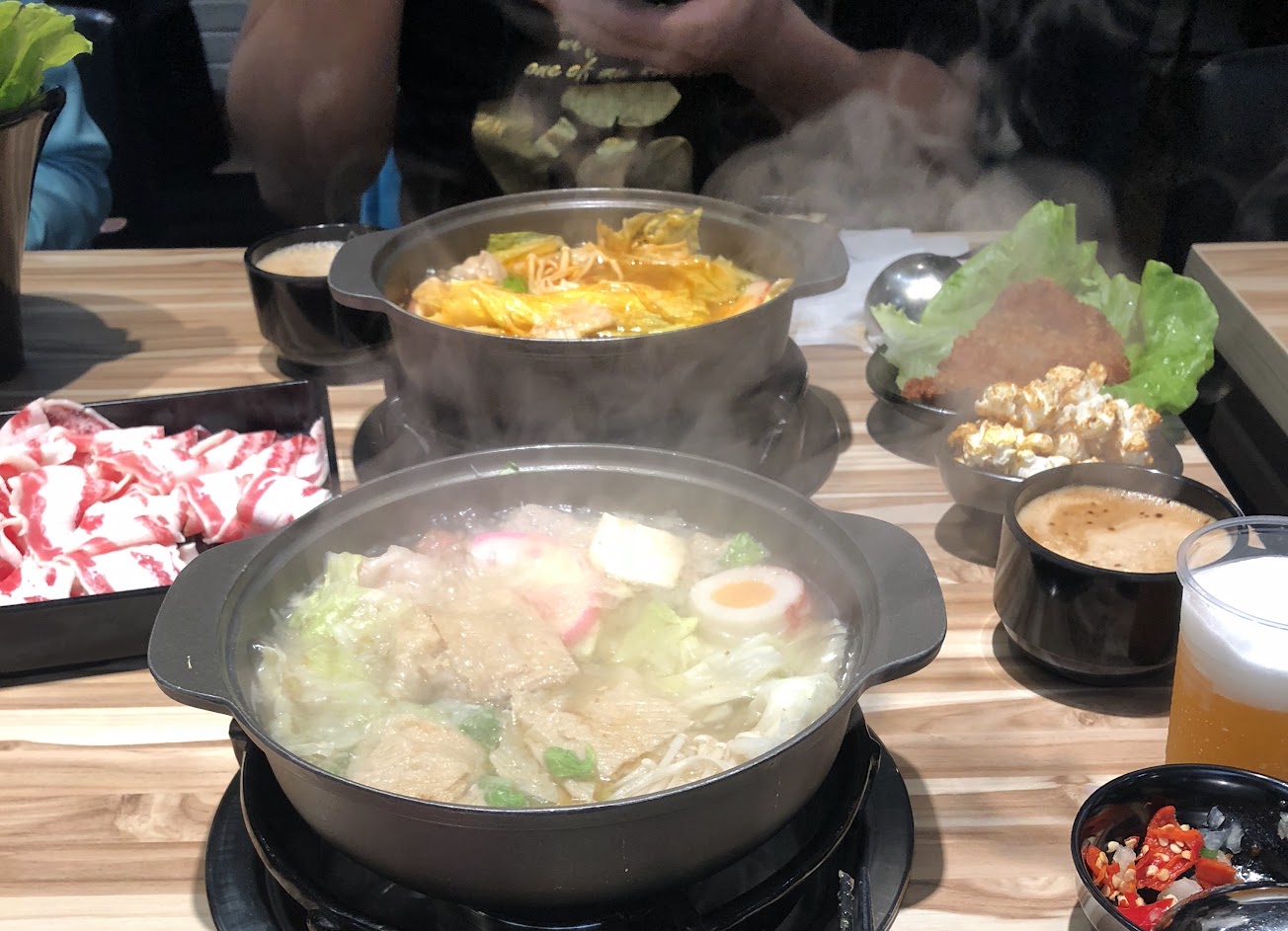 上菜流程怪怪的,可能因為人多的關係亂了,當天碰到先上肉盤,肉上了快十分鐘才上鍋。食材算是吃起來還不錯;肉盤量可以自選,5, 10或15oz,建議和另一半去的話可以各點10oz即可,除非兩人對食量都有信心。