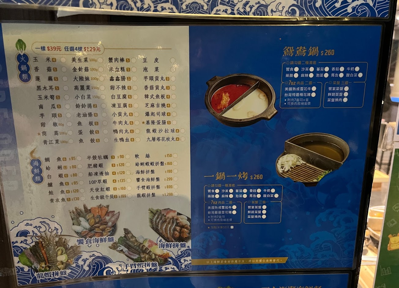 平日下午人不算多但店員已經忙不太過來,服務態度是很親切但人手好像不足。這次吃一鍋一燒烤不錯吃還有當月壽星生日送海鮮盤