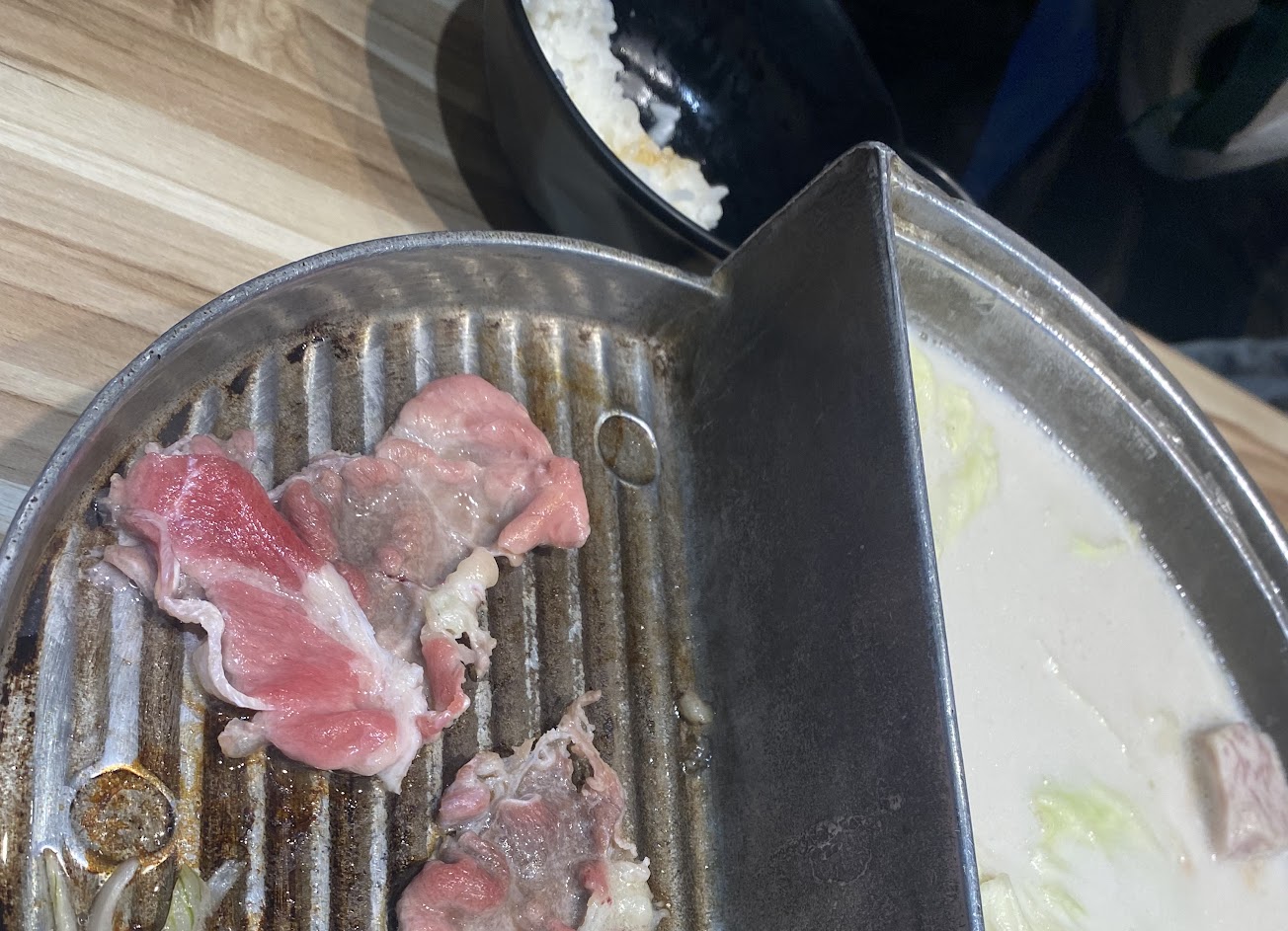 可以同時體驗火烤兩吃,今天體驗牛五花肉質很不錯,一片一片接著烤都忘了吃火鍋,而且還有白飯吃到飽很下飯!CP值很高超推薦!