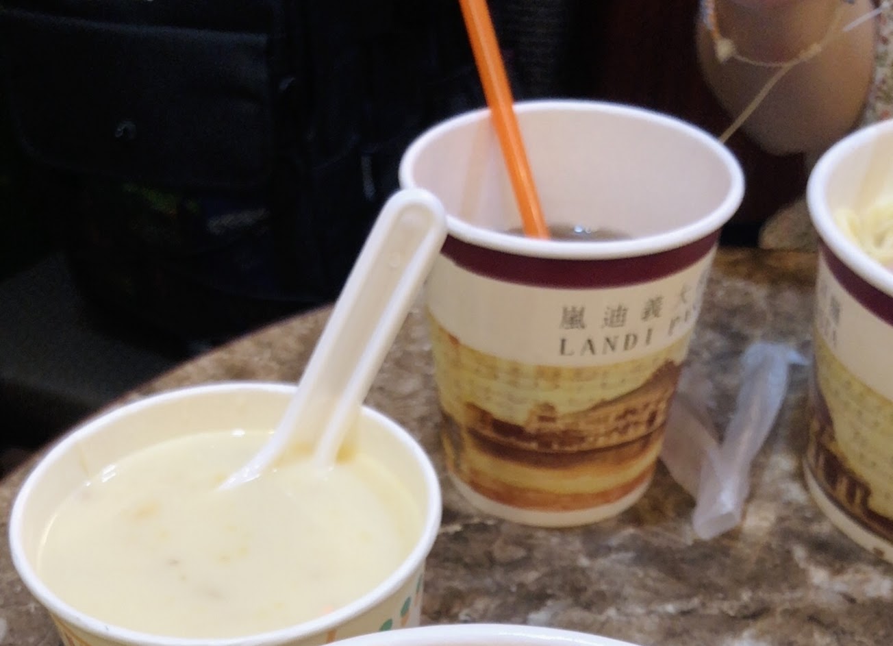 因為疫情期間 連內用都是使用紙碗裝餐 導致像在吃湯麵並不是義大利麵? 吃到最後麵都軟掉了 口感就不是那麼順口~ 濃湯剛拿到時超燙的 喝起來還蠻濃郁的 紅茶一杯容量就像是早餐店的大小 旁邊有彩色吸管可自取