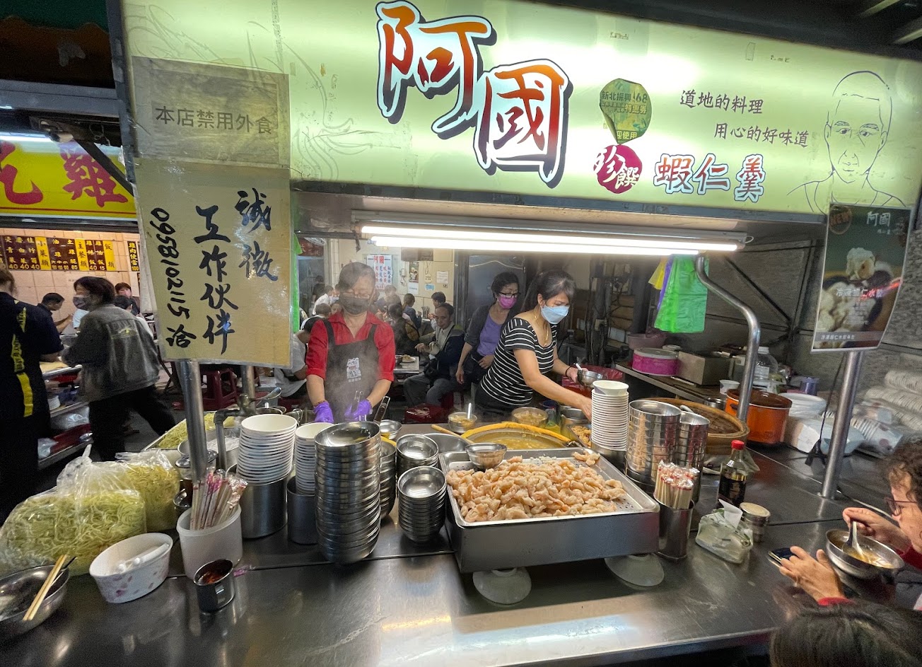 其實我很喜歡吃阿國蝦仁羹,從10幾年前就是忠實客戶,羹跟湯頭都是喜歡的。可是前陣子去買蝦仁羹米粉的時候,燙米粉的人員用同樣剛剛才找錢摸錢的手,抓了一把米粉丟進湯鍋裡去燙,看了真的覺得有點不乾淨,【其實手可以再套層乾淨塑膠袋,再抓米粉或麵】,這樣會比較好一些。最後結帳時,剛剛那個人員又是用同樣抓米粉的手收錢。其實真的蠻喜歡阿國蝦仁羹的口味,希望老闆可以方便可以提醒人員稍微注意一下細節。因為我真的蠻想去買羹來吃,可是想到這個就又讓我打消念頭。