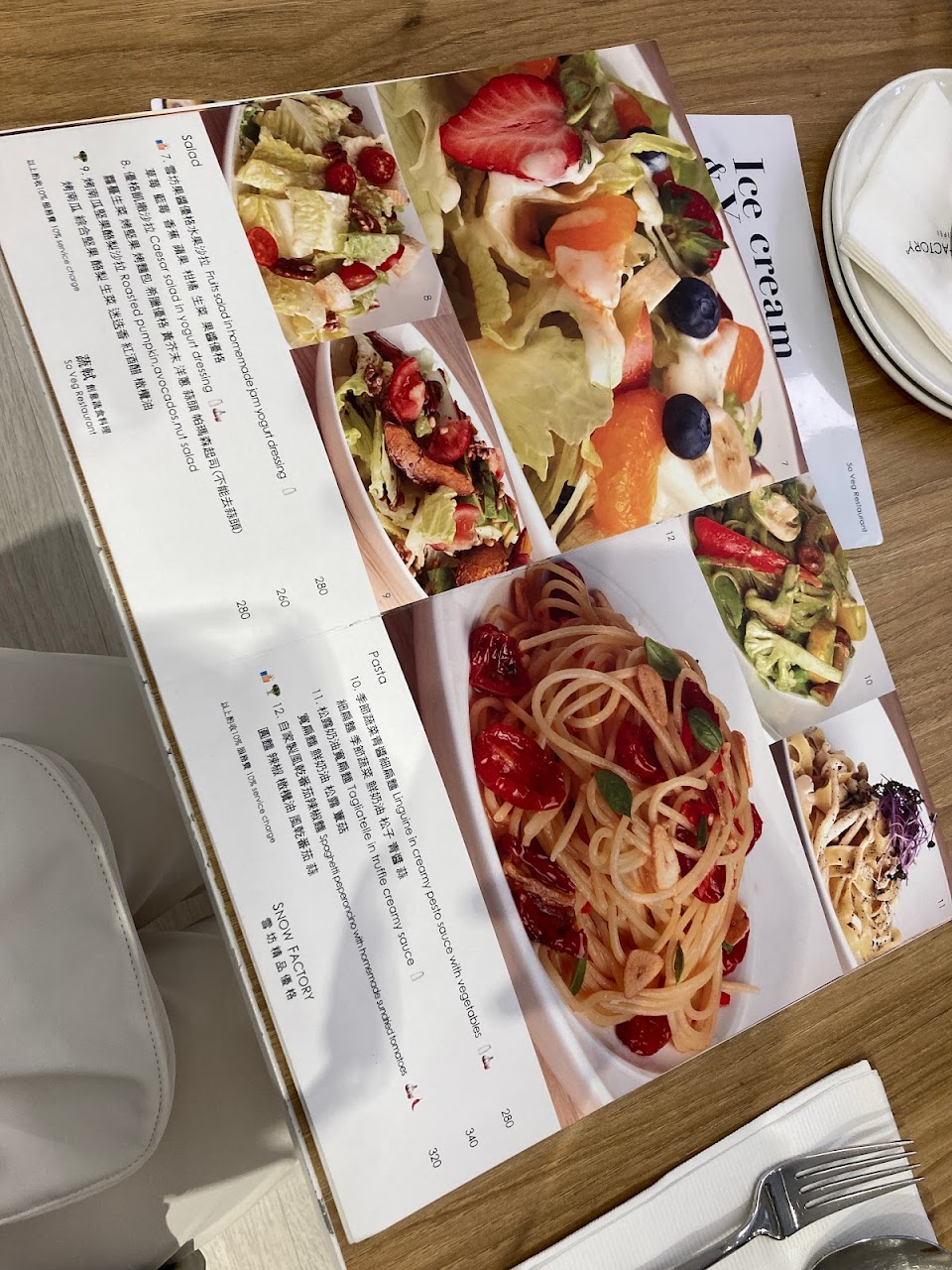 香草洋芋烤節瓜、POD水牛乳酪沙拉、優格凱撒沙拉、烤茭白筍蛋黃細扁麵、瑪格麗特、乾鍋花菜臭豆腐手工麵