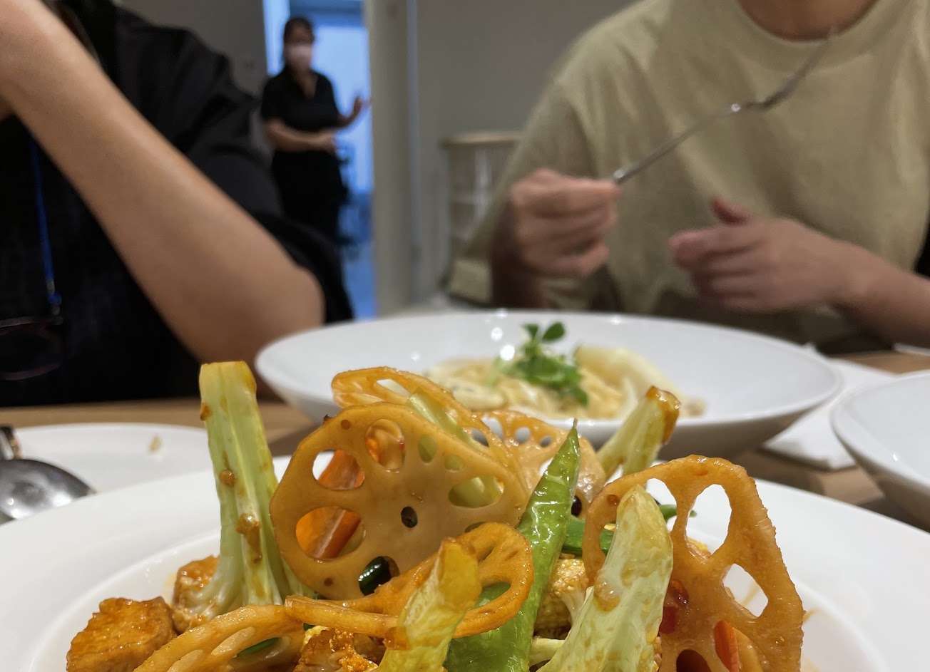 店內用餐環境很棒,明亮寬敞,讓人感覺很舒適,菜單選擇也蠻多的,這次點的松露奶油麵跟乾鍋臭豆腐都很好吃,松露奶油麵的奶香很重,松露味也很香,配上扁麵口感很棒,乾鍋臭豆腐比較偏重口味,不過臭豆腐的調味超棒!算是很特別的料理,另外套餐的冰淇淋也很好吃,對於愛吃肉的我來說一開始看到蔬食其實會比較沒興趣,但實際吃了之後真的覺得很棒,會想回訪嚐嚐其他料理