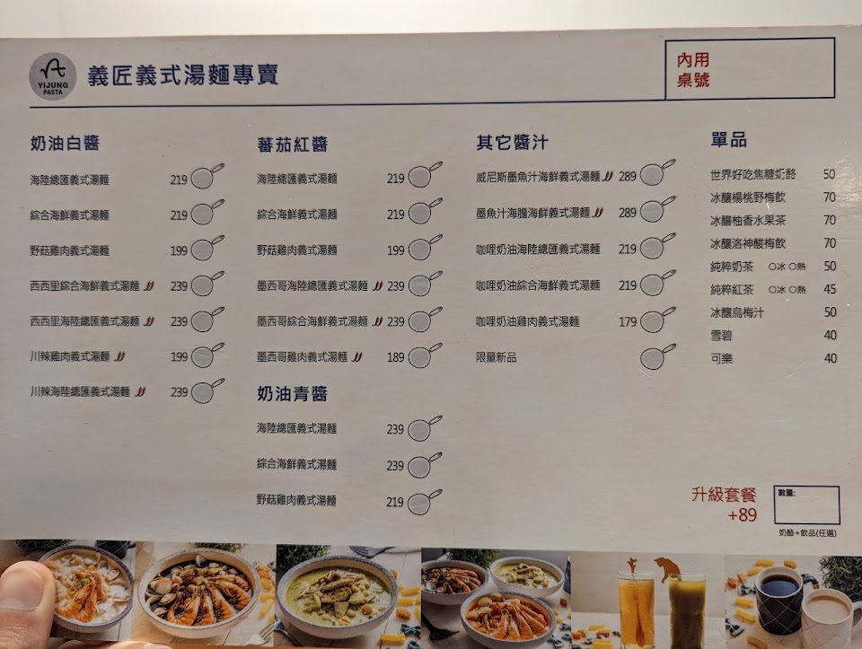 2024最新在地推薦餐廳的菜單_義匠義式湯麵-永和得和店的菜單、圖片