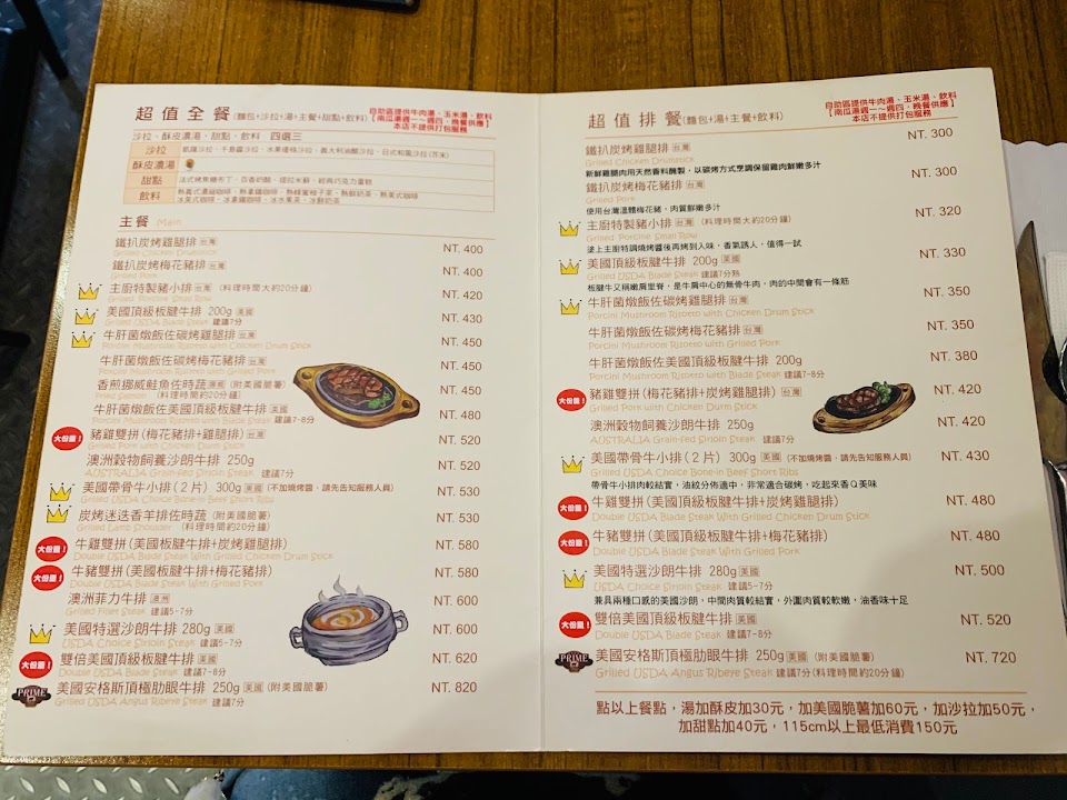 餐點非常棒,大推牛肝菌燉飯+牛排!!希望店家能提供其它部位的牛排!??????