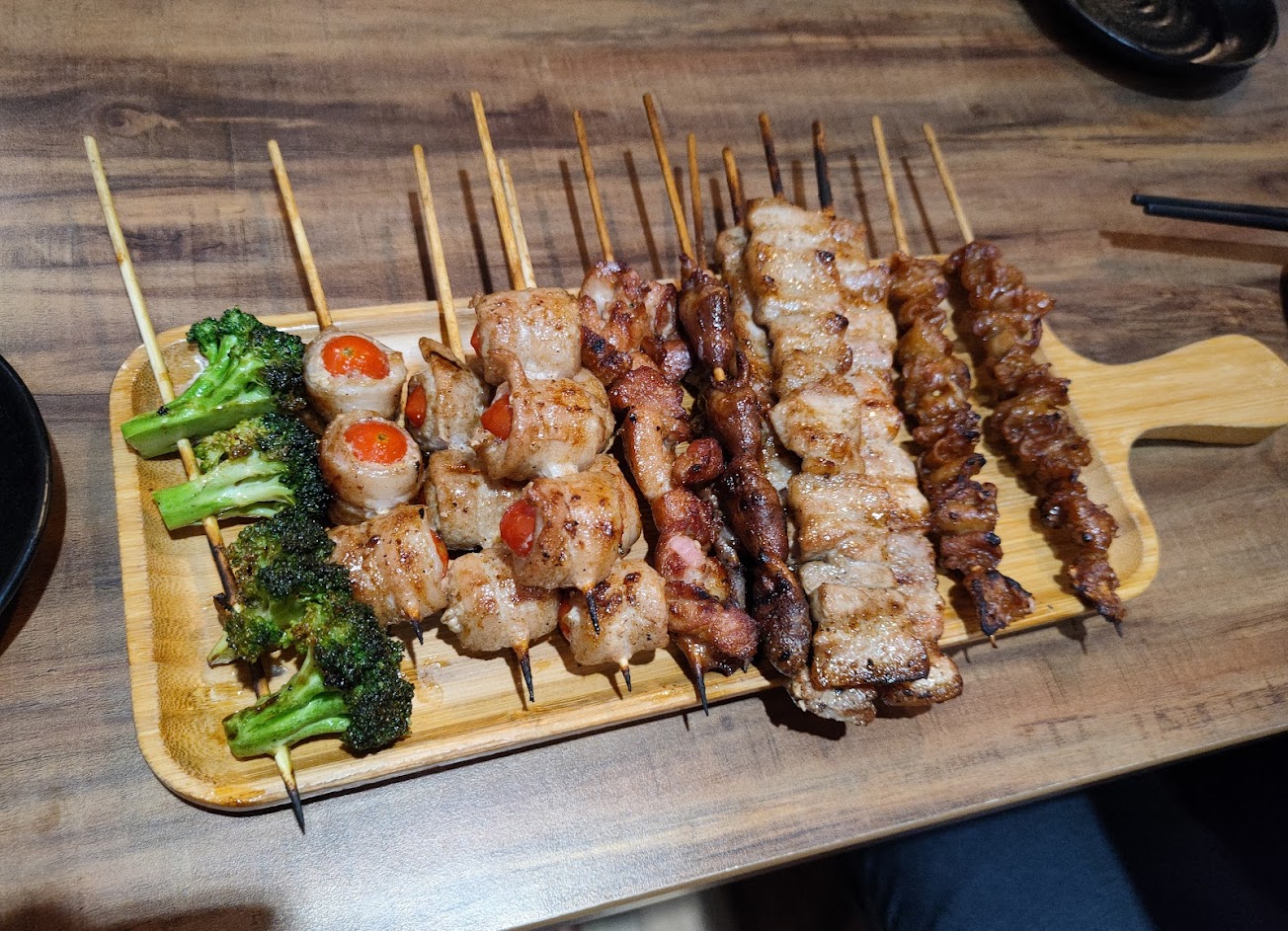 種類不少,烤功不錯,但有些調味過鹹,店內沒油煙味。