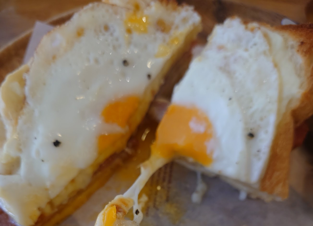 內用早午餐的菜色多樣,營養均衡又美味,咬咬女孩這名稱有趣,半熟蛋鋪在烤過的起司和吐司上,中間夾了火腿,很值得坐著和家人好友聊