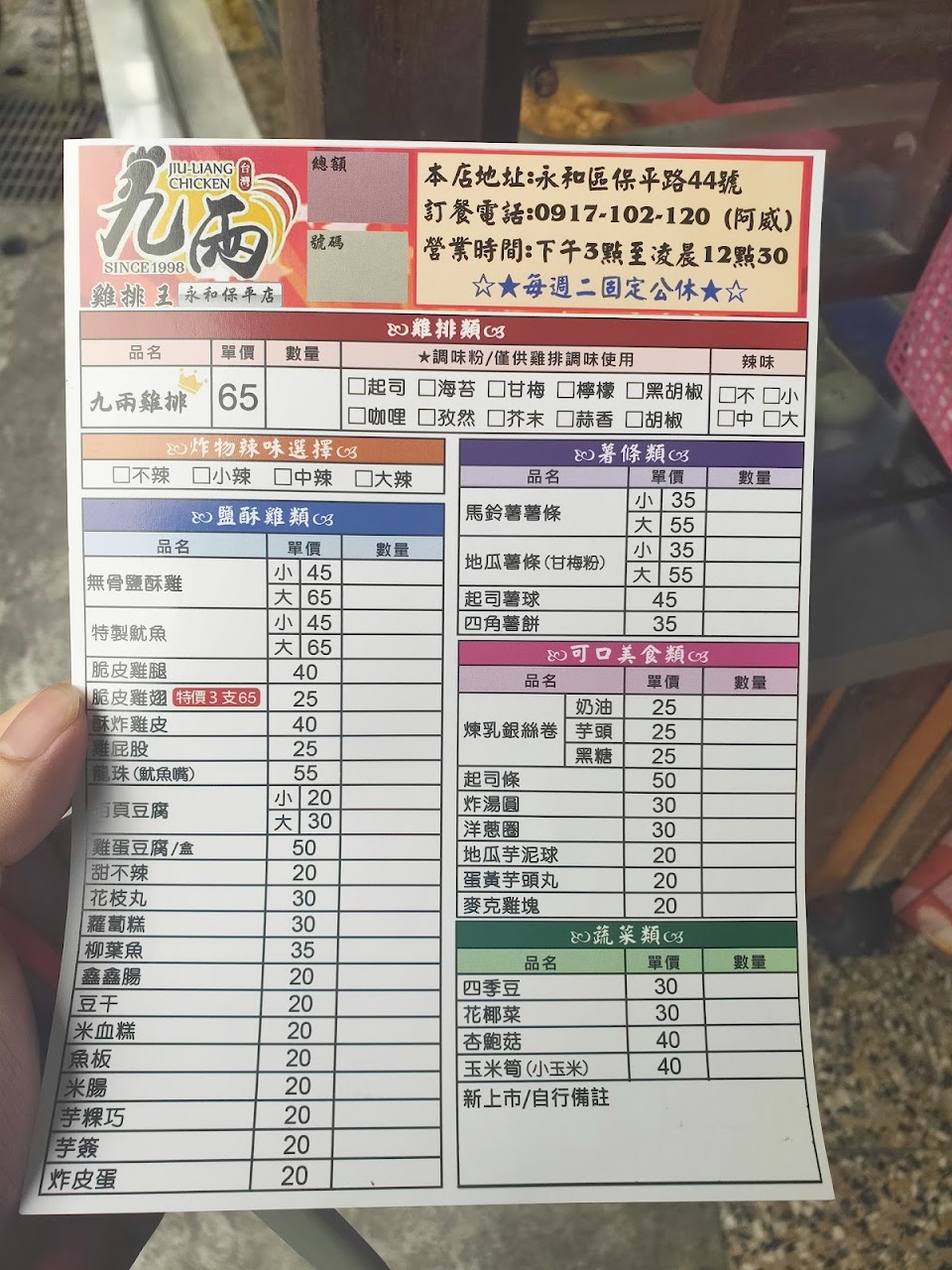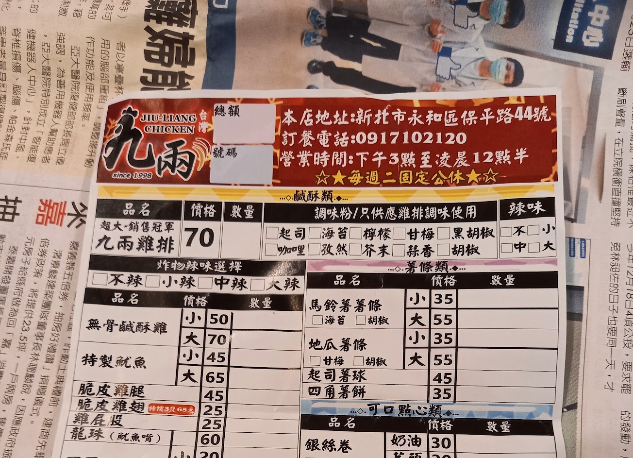 2024最新在地推薦餐廳的菜單_九兩雞排王的菜單、圖片