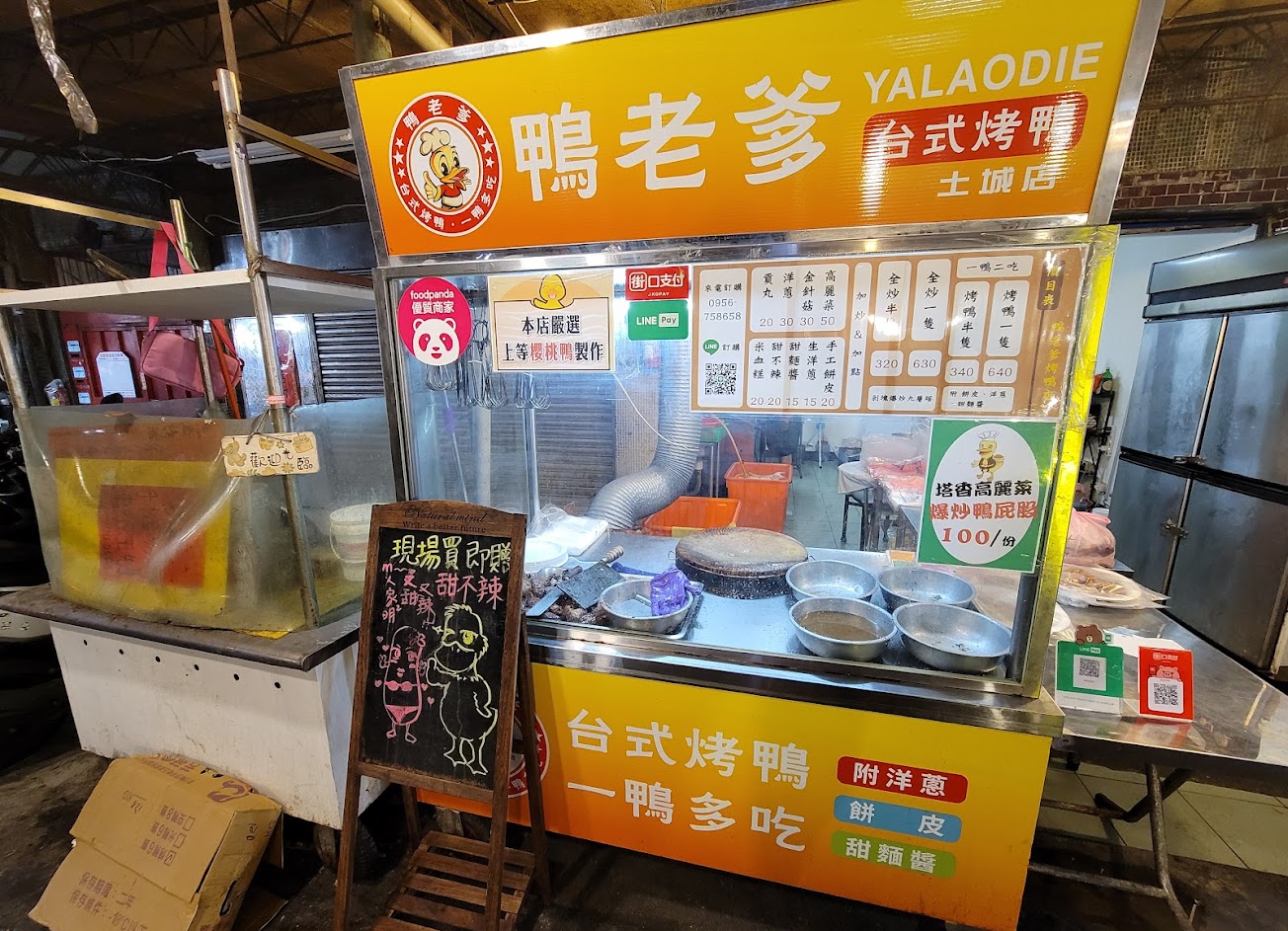 看評論才用熊貓自取的卻是蠻失望,一到攤位看到吊在攤上的烤鴨都是乾乾瘦瘦的就有點不太妙的感覺,沒看過這麼瘦的櫻桃鴨 回家吃片鴨皮不是脆的算韌韌乾乾的, 炒的口味一般般,炒鴨骨的量很少,且光鴨脖子跟鴨頭的量就佔了一半,土城每家烤鴨店都吃過,你們家炒鴨架的量是最少的