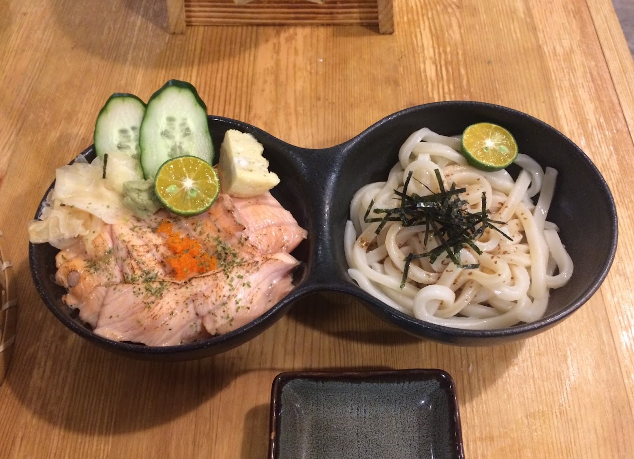 當天選擇鮭魚散壽司雙寶餐&炸豬排烏龍麵,口味不錯,份量適中。但是豬排表現稍薄弱,不過以價格而論,整體cp值還是算高!