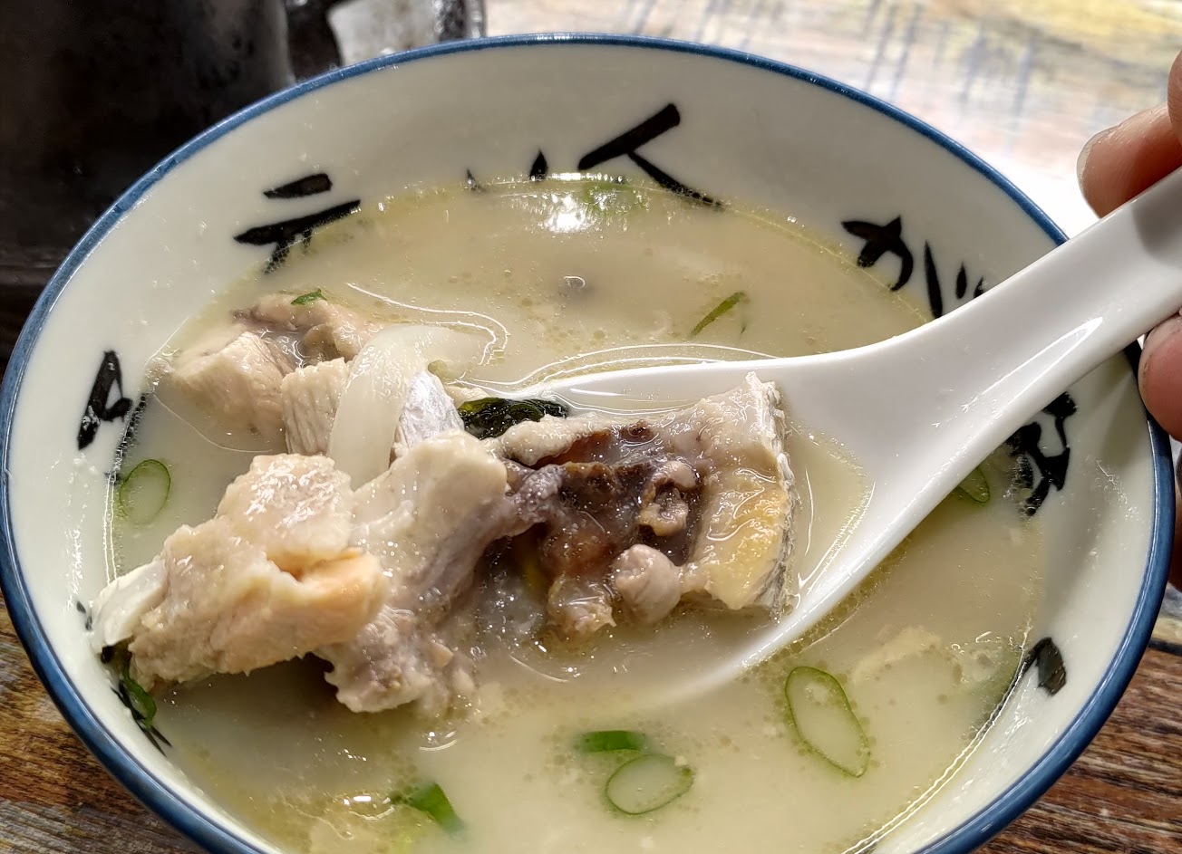 如果像我一樣是期待來一碗暖呼呼冒煙的湯可能會有點失望,基本不用吹就可以入口的溫度,有蠻多魚肉的,幾塊大塊的沒有魚刺 小塊的刺比較多
