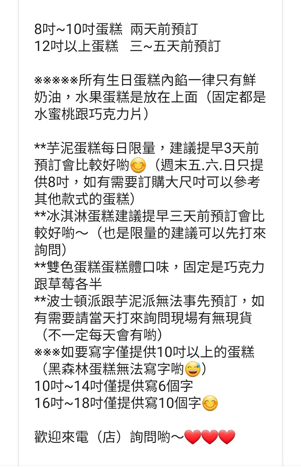 (詢問得知現在有長形以及四吋小蛋糕可購買,需預訂。)