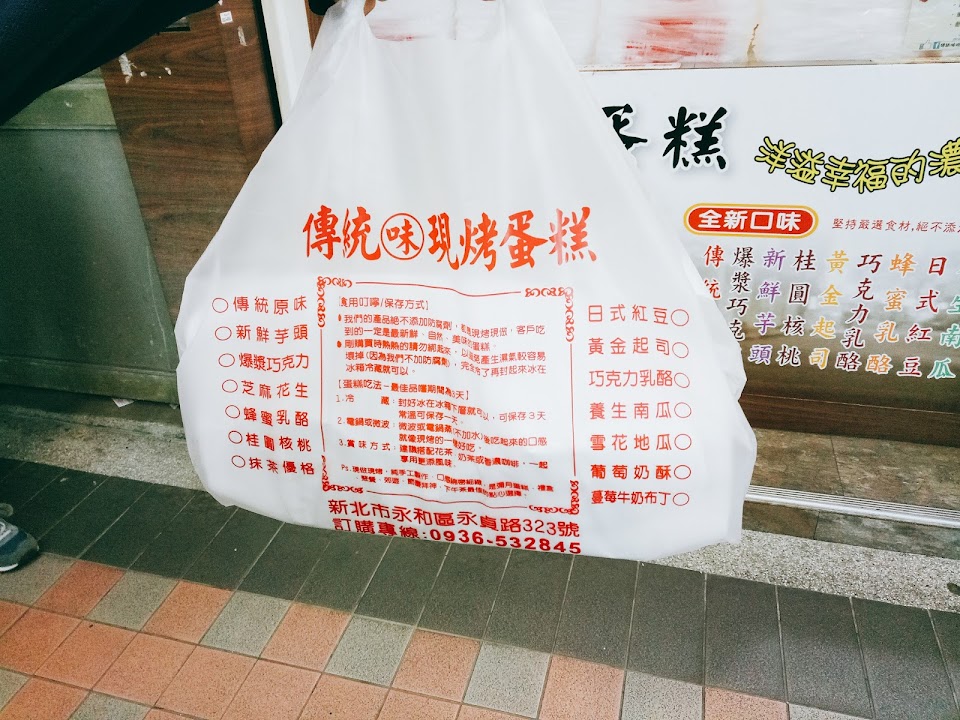 缼點:用塑膠袋裝(即蛋糕墊白紙用塑膠袋裝,個人不太喜歡,因為蛋糕有熱度