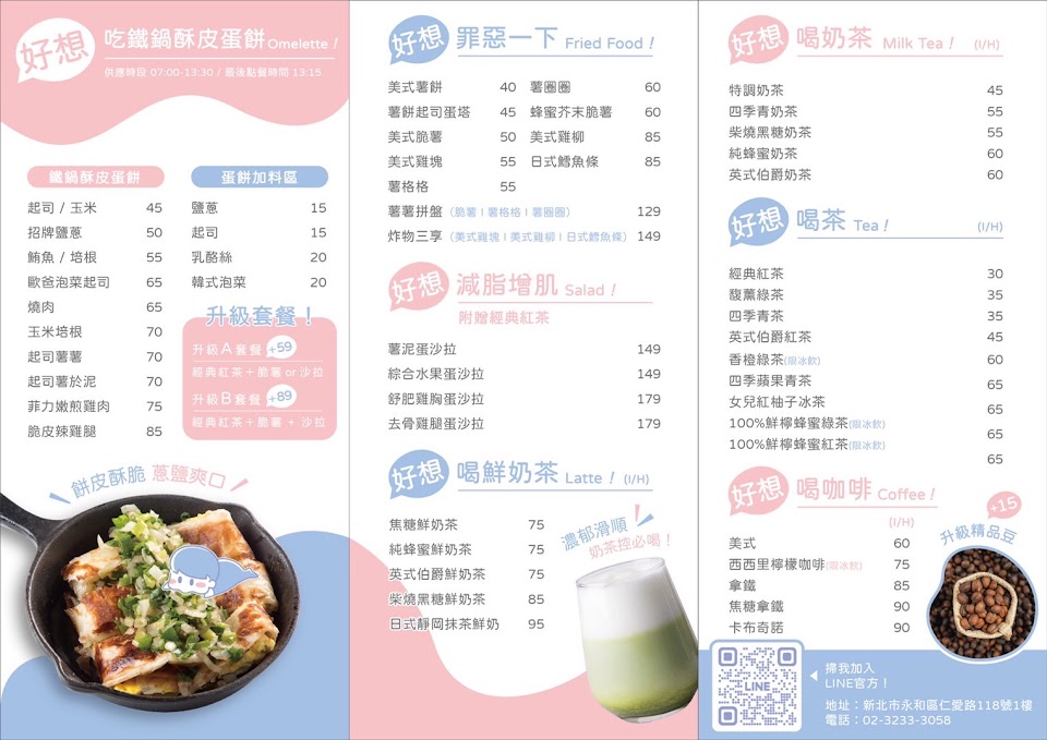 燒肉蛋餅風味獨特,抹茶鮮奶厚片茶香濃厚。