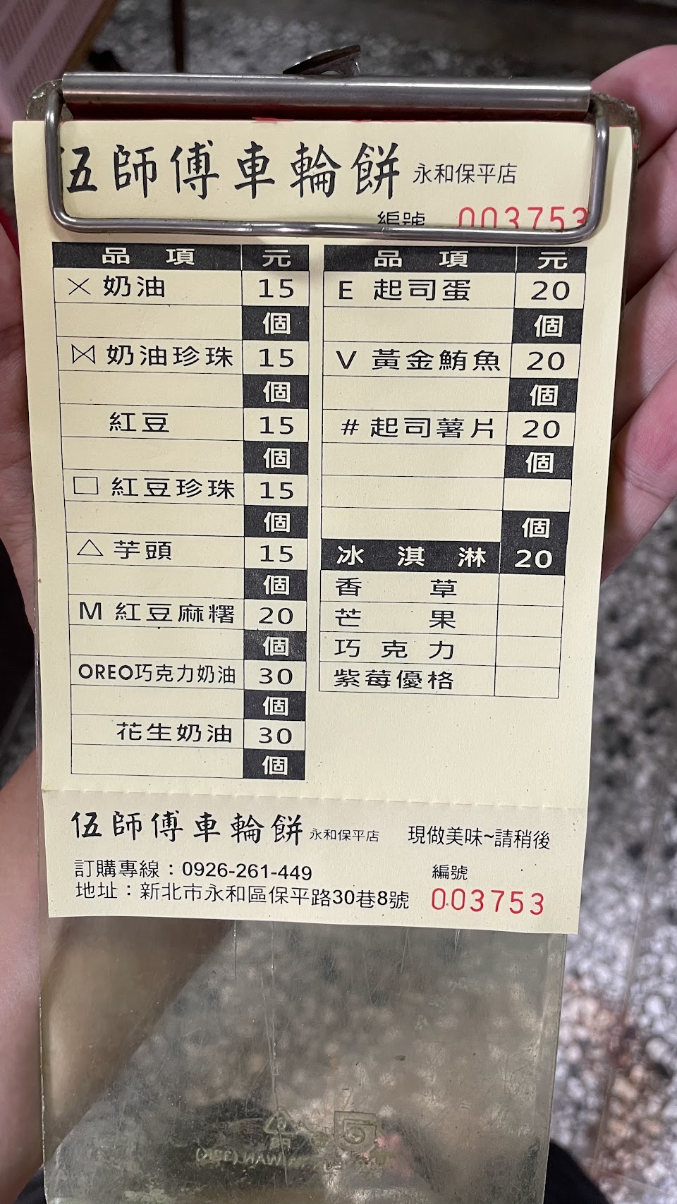 2024最新在地推薦餐廳的菜單_伍師傅車輪餅 永和保平店的菜單、圖片