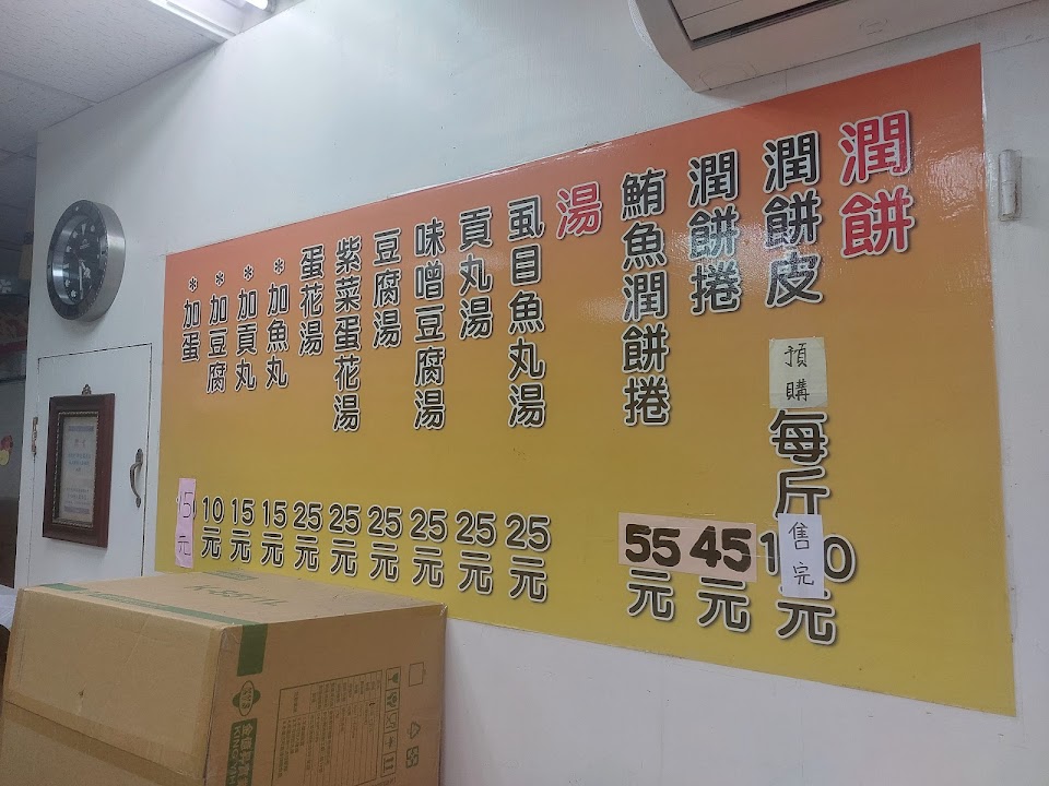 全家都愛招牌潤餅及鮪魚潤餅。現場等後的顧客還蠻多的,如果不想在現場久等,建議電話訂購後,立刻出門到店領取。超過10分鐘未到領取,店家會轉給其他在現場等後的客人,後續再補給晚到的電話訂購人。