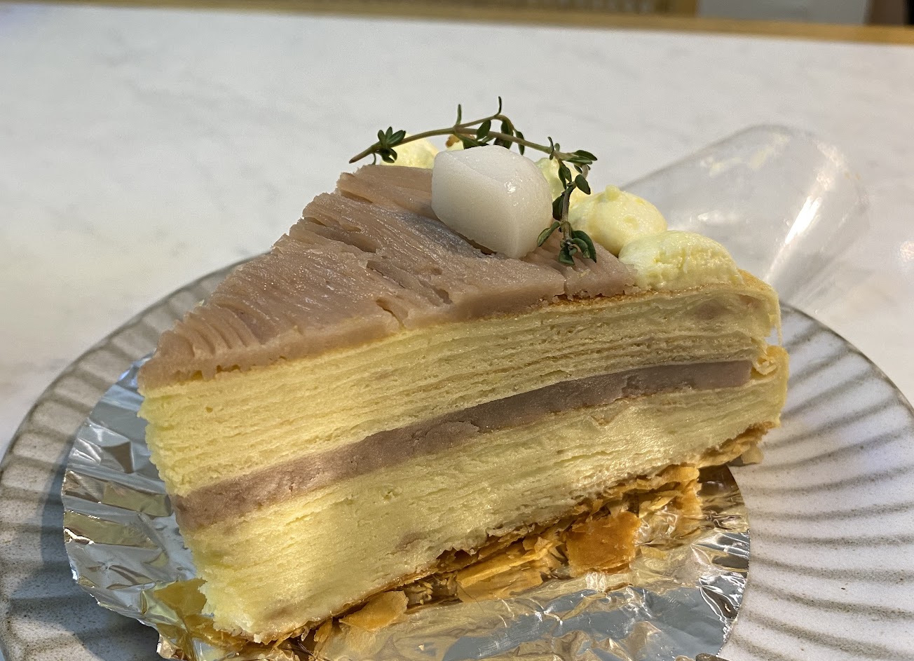 千層蛋糕的底是千層派皮,吃的時候派皮和蛋糕會分開,比較無法感受兩者相融的口感
