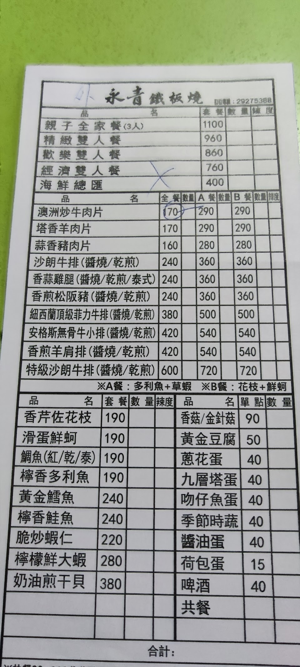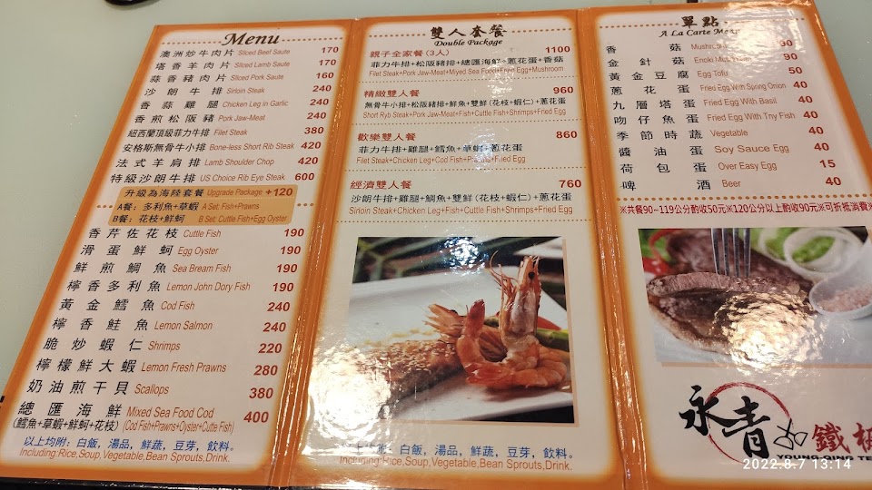 2024最新在地推薦餐廳的菜單_永青鐵板燒的菜單、圖片