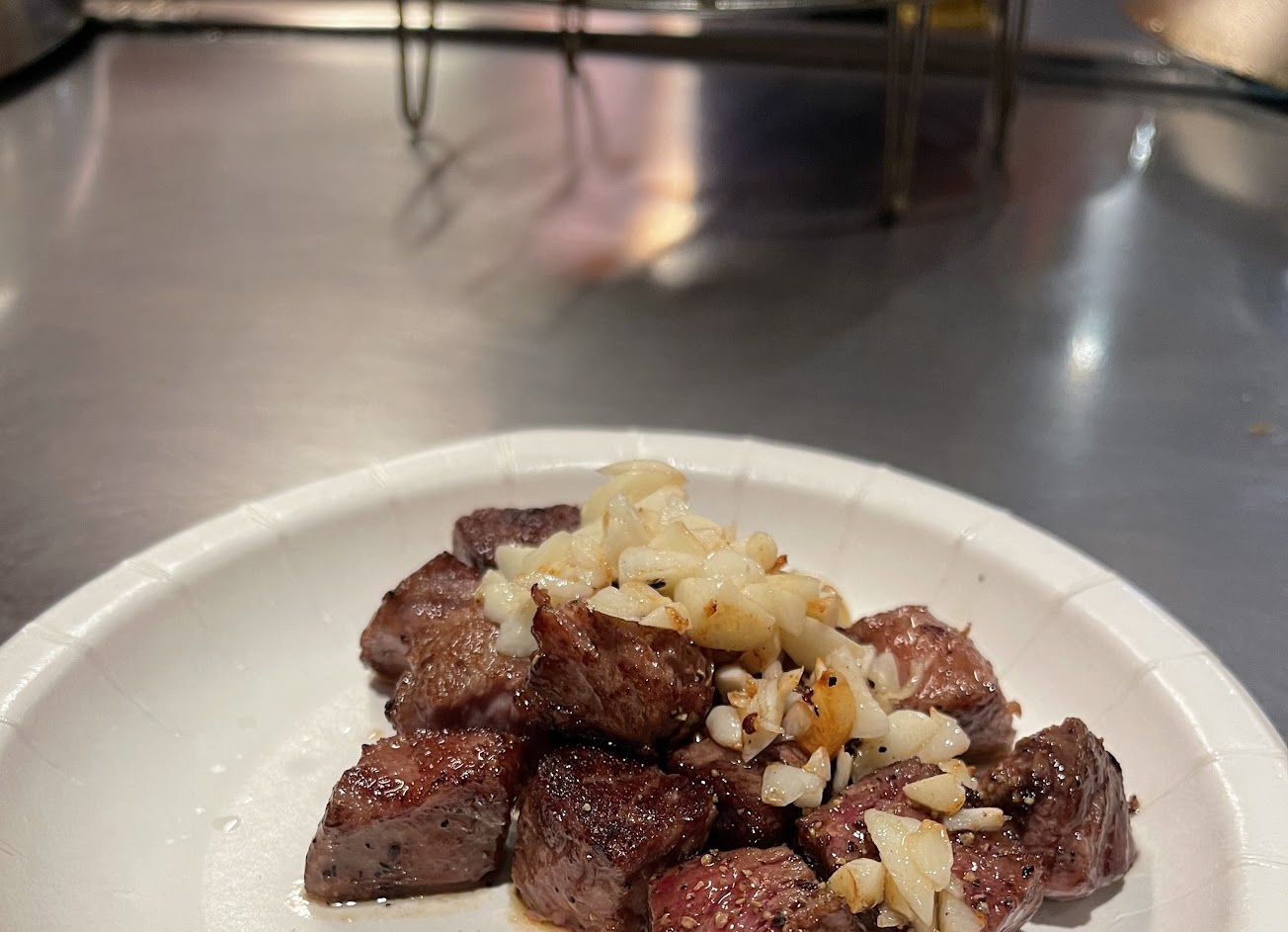菲力牛排剛煎好好吃有肉汁,不會乾柴,老闆用紙盤裝,所以放在鐵板上還是會微微的加熱,不想吃太熟牛排可能要注意一下。