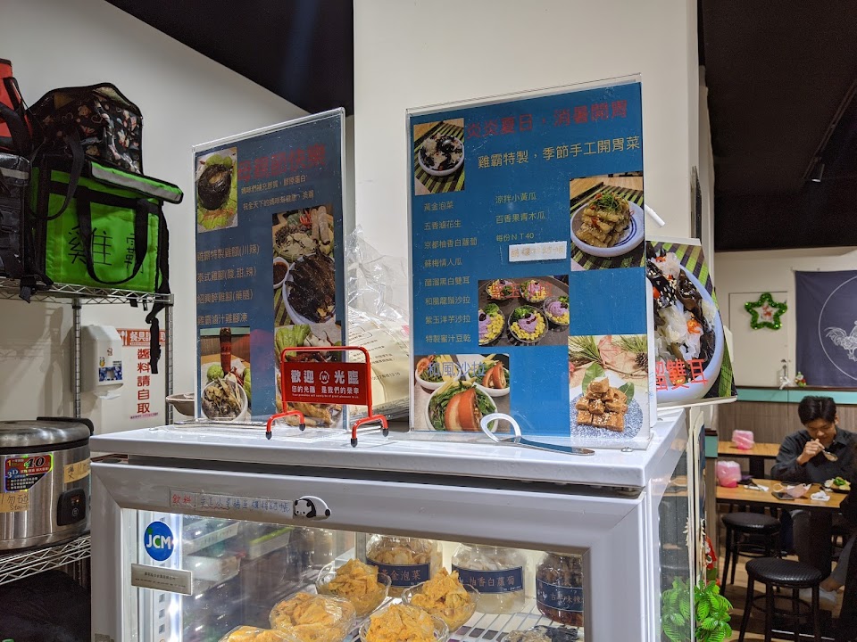 來雞霸現場用餐可不是用紙張菜單勾選的哦,那只是参考,現場有一台點餐機,必需在這台點餐機點好餐點,然後會打印一張單據,再去櫃台結帳,之後才會送餐哦!雞霸的餐點,食材很新鮮,滷味和蔬菜都吃的到食材本身的原味,大多是油蔥和其醬汁為主的伴料,而其醬汁屬於偏甜,有南部的口味,每個餐點都讓人感覺色香味俱全,還蠻好吃的,另外很建議點便當類的餐點,有肉又有菜,份量也較足,CP值很高,總之,雞霸店的擺設很簡單清潔,但其料理新鮮好吃,上餐速度也很快,很適合快速用餐的客人,特別推薦哦!
