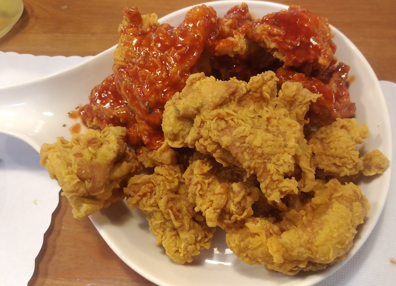 雞肉本身炸得還算不錯,但韓式辣味只有甜味不太辣,不夠道地。