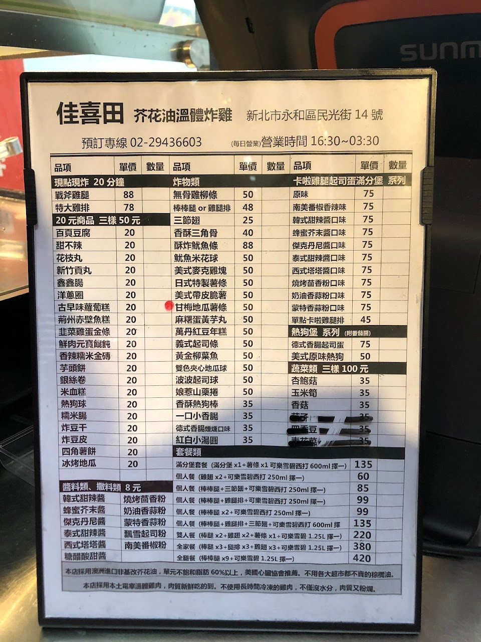 111/5/6 夠麻吉活動,現炸雞排78元約23x13cm,麵皮不是脆皮也不是古早地瓜粉,個人不是很愛,雞肉吃起來鮮嫩無腥味。甜不辣20元2份炸的剛好不會過硬。小豆干20元切斜角半塊炸,蘿蔔糕切半塊炸,第一次吃這種切法炸,應該是考慮到不會炸過乾和硬,但份量看起來就會比較少,整體胡椒鹽灑的比例剛好不會過多。