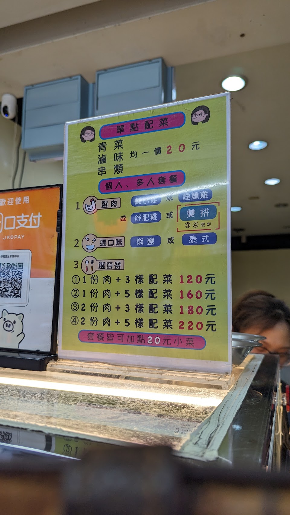 在老闆娘還是一個人的路邊小攤位吃到現在看她有能力分租店面不用怕刮風下雨,時光冉冉,她家的菜跟肉還是好吃,尤其是菜的份量有多,通常點五六樣菜就很飽,不像是有些鹽水雞的菜都一咪咪,而且還常常熱情的多送菜給客人,闆娘跟她姊妹隨和有禮,口味要怎樣調整都可以說,推推,永和在地人的口袋名單