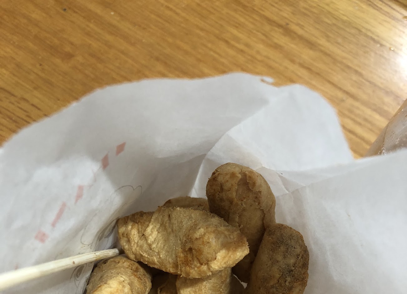 甜不辣超脆,脆到很乾,又很大個,超難入嘴 鹹酥雞味道獨特,但以這個價格來說偏少
