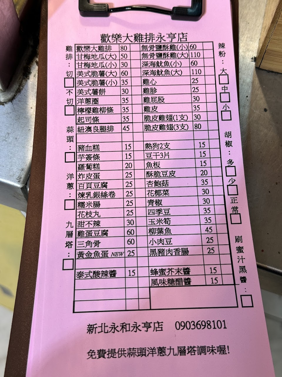 2024最新在地推薦餐廳的菜單_歡樂大雞排-永亨店的菜單、圖片