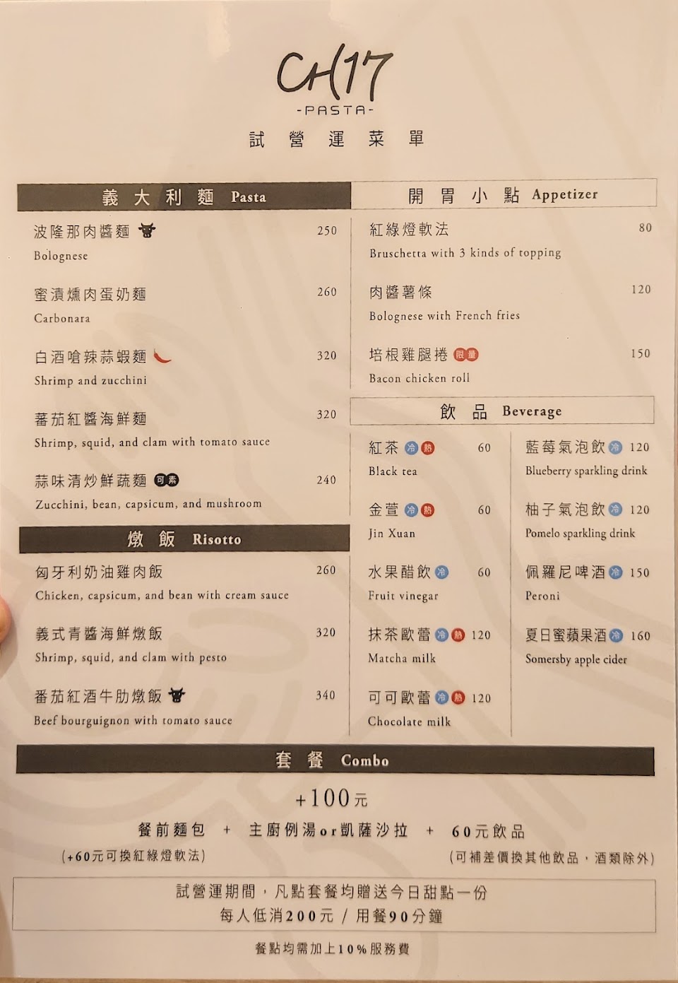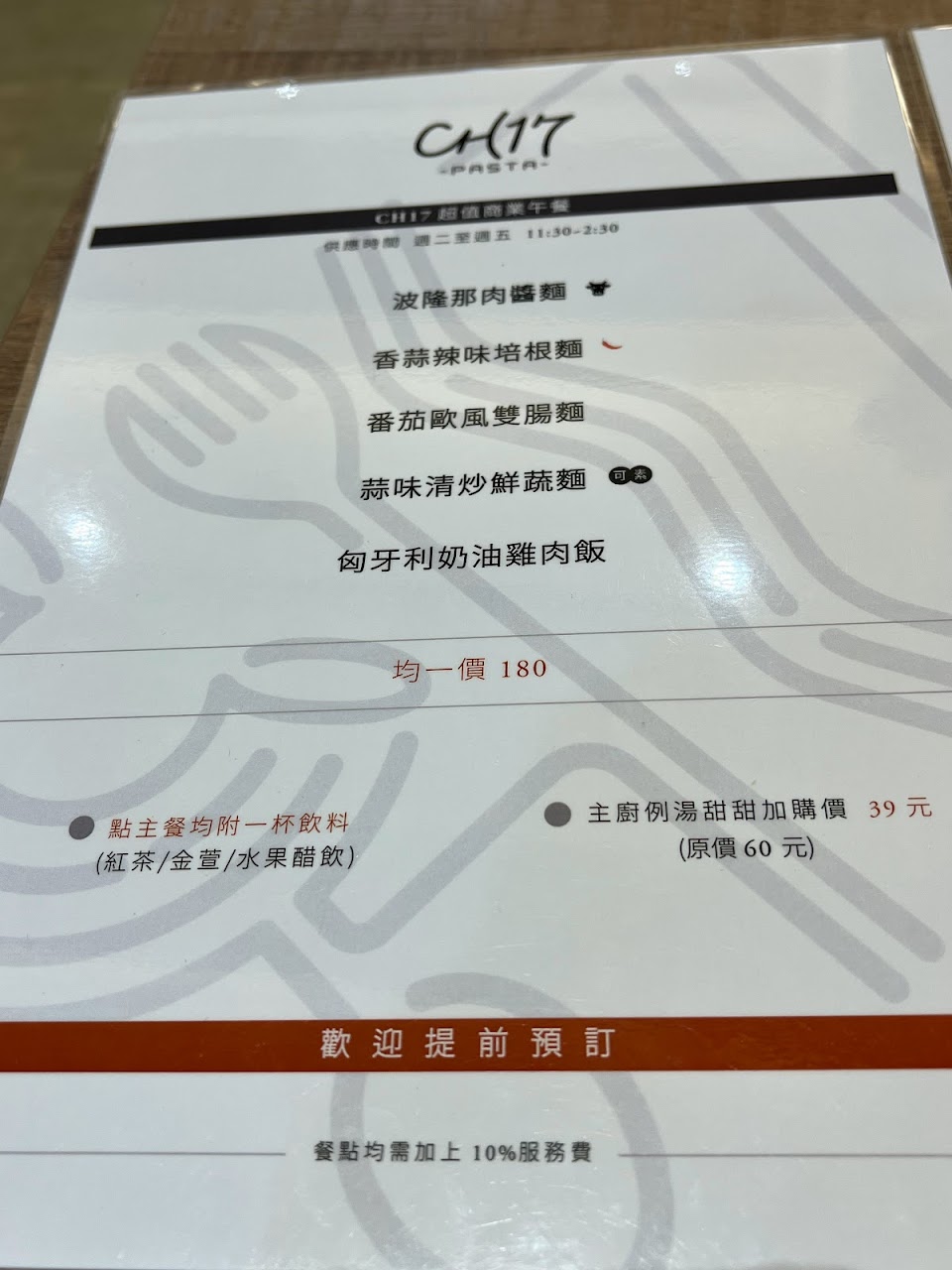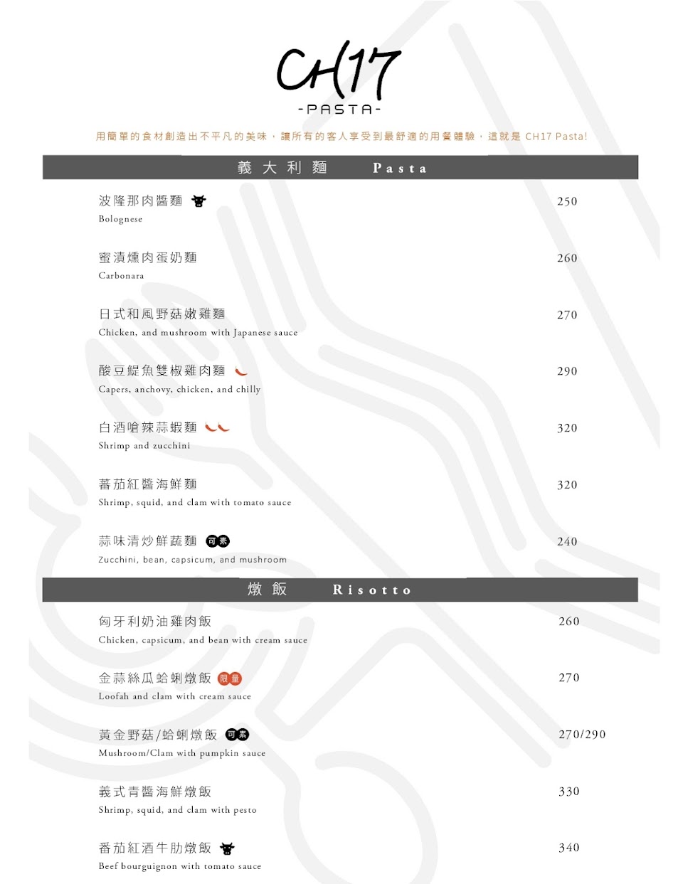 2024最新在地推薦餐廳的菜單_Ch17 pasta 義式餐廳 (不定公休日請看IG/FB)的菜單、圖片