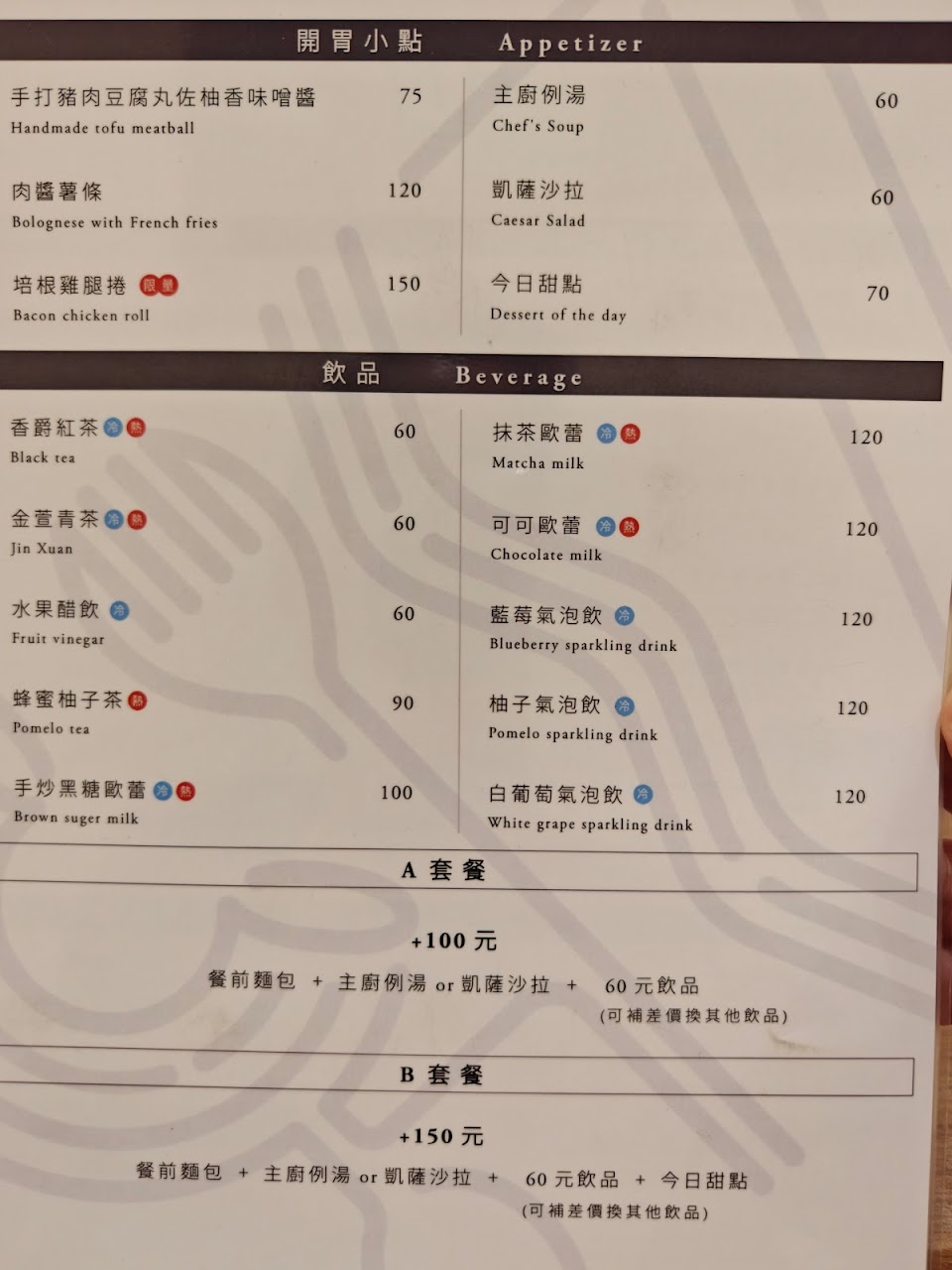 價格整體也不會很貴,想要簡單吃可以點個主餐吃吃,情侶夫妻想要有點儀式感很適合來這裡內用加個套餐,不輸給外面連鎖高級餐廳的氣氛,員工介紹菜單菜品也很詳細?