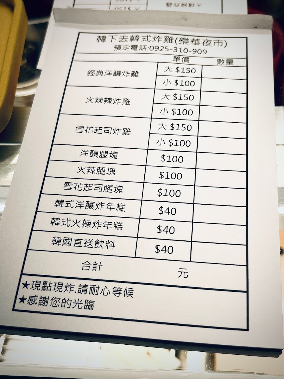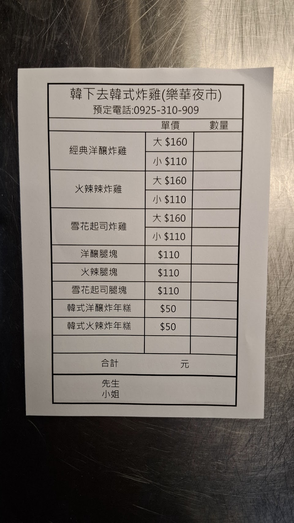 2024最新在地推薦餐廳的菜單_韓下去 韓式炸雞的菜單、圖片