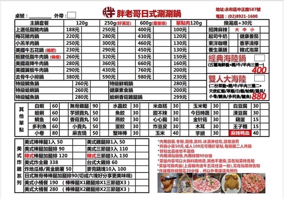 2024最新在地推薦餐廳的菜單_胖老哥日式涮涮鍋美式炸雞的菜單、圖片