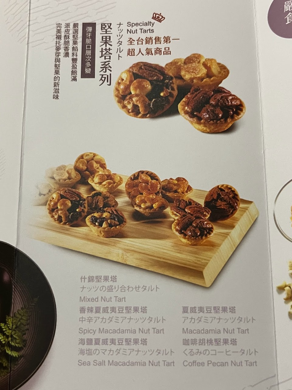 一進去店內,店員就很熱心的向我們介紹他們的產品,同時也拿了試吃品給我們嘗試,發現堅果塔吃起來很讚,不會太甜的那種。
