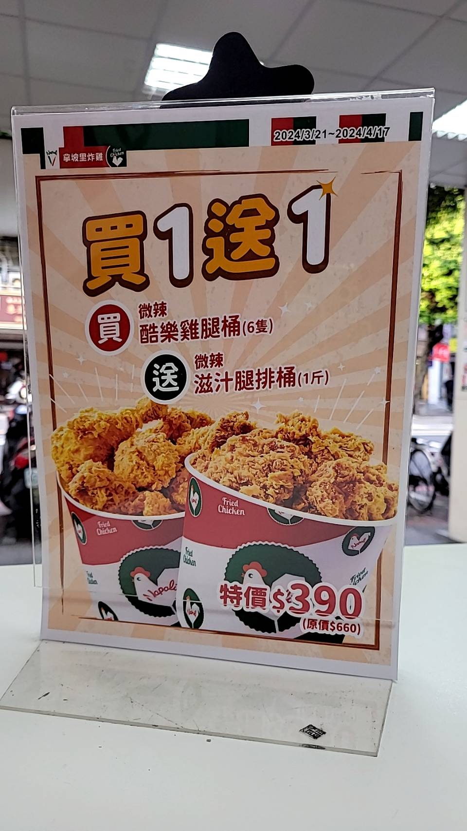 少給一隻雞腿 雞腿二重奏的活動應該共4雞腿4腿排 這種雞桶也很難當下檢查 希望店員多加注意 服務 外帶 餐點類型 午餐 平均每人消費金額 $200-400