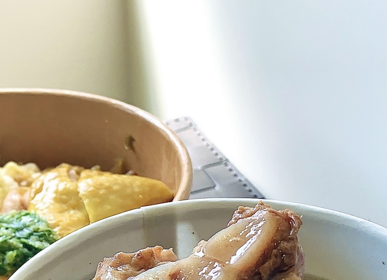 Ubereats點餐,雞肉軟嫩蔥醬香甜,配菜也都處理得很用心,飯量略少;肉骨茶味道濃郁,裡面肉有三、四大塊,一咬就化掉,下次會再回購